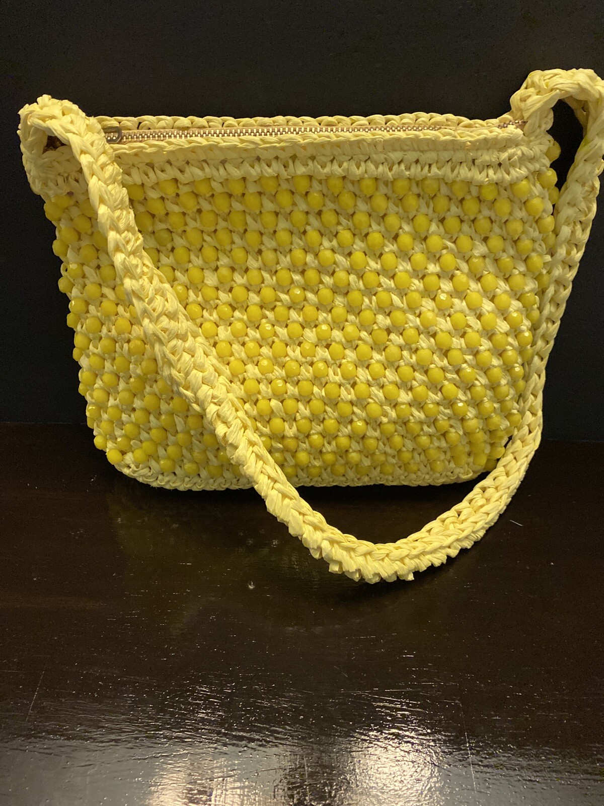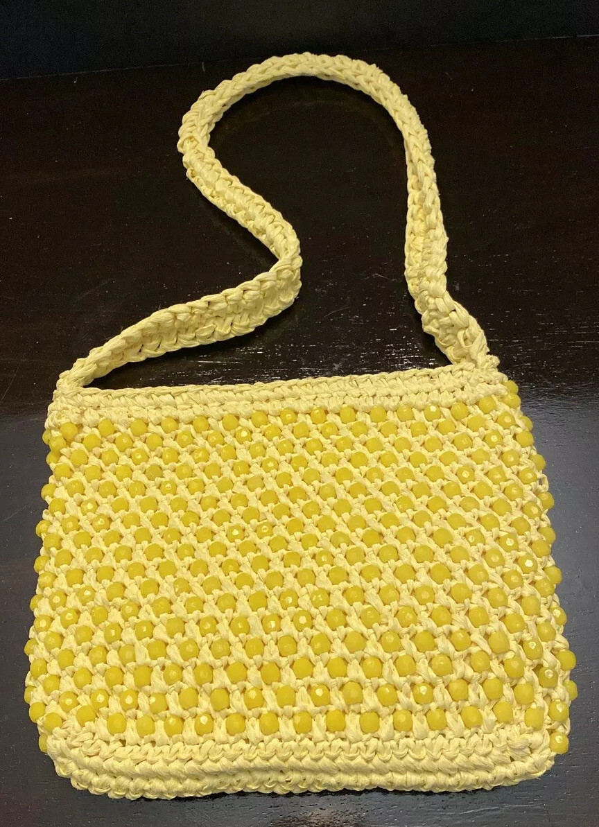 Vintage VKK Beaded Yellow Ziptop Purse Retro, Boho