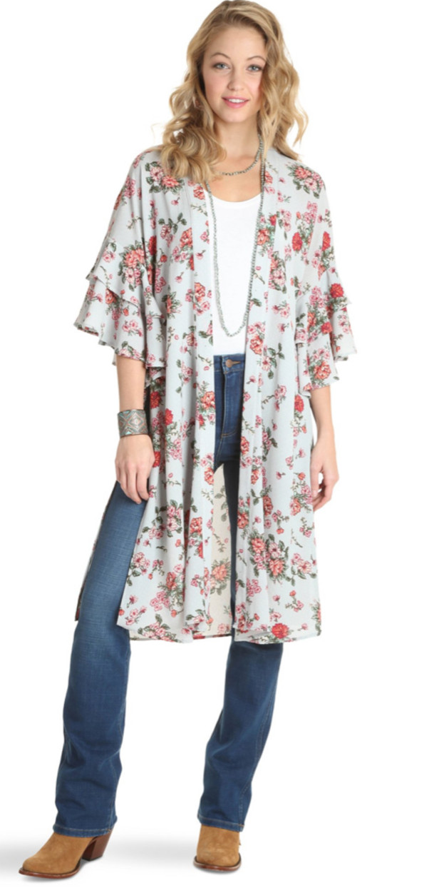 как выглядит WRANGLER RETRO FLORAL BELTED KIMONO DUSTER Open Cardigan FREE PEOPLE NEW фото