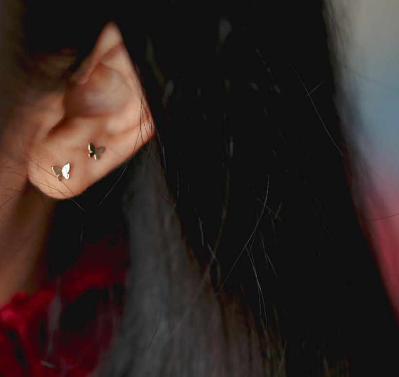 как выглядит S925 Sterling Silver Gold Tone Tiny Flying Butterfly Stud Earrings фото