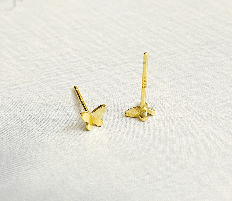 S925 Sterling Silver Gold Tone Tiny Flying Butterfly Stud Earrings