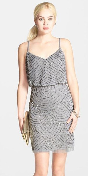 NEW Adrianna Papell Sequin Art Deco Blouson Dress in Silver Grey SZ 10 N181