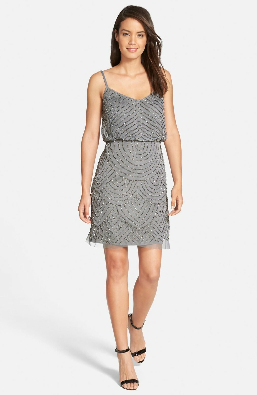 как выглядит NEW Adrianna Papell Sequin Art Deco Blouson Dress in Silver Grey SZ 10 N181 фото