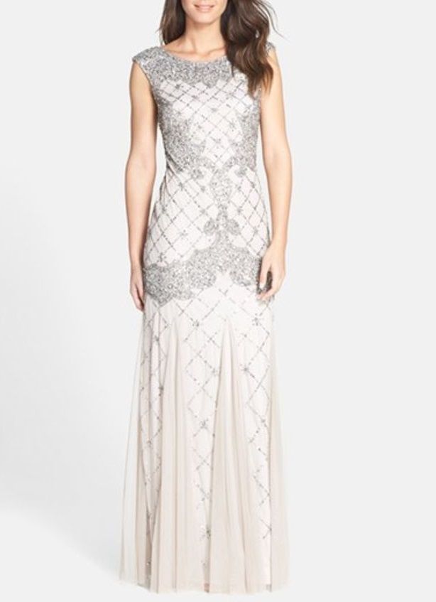 как выглядит NEW Adrianna Papell Beaded Trumpet Gown Sequin Grey RARE SZ 10 N106 фото