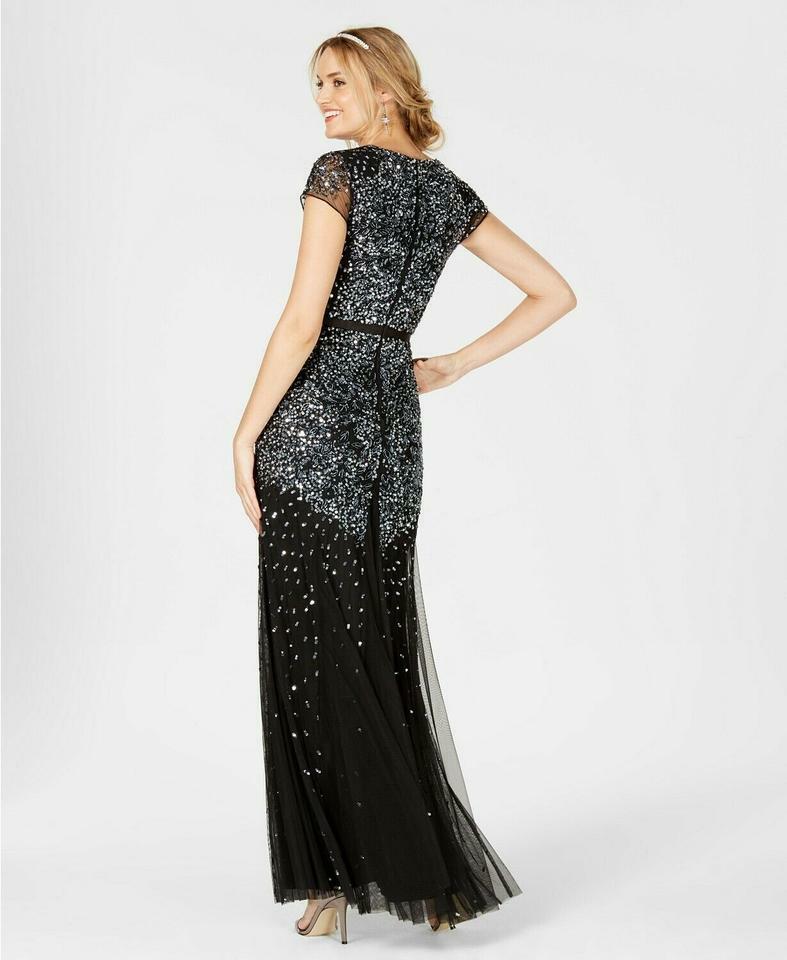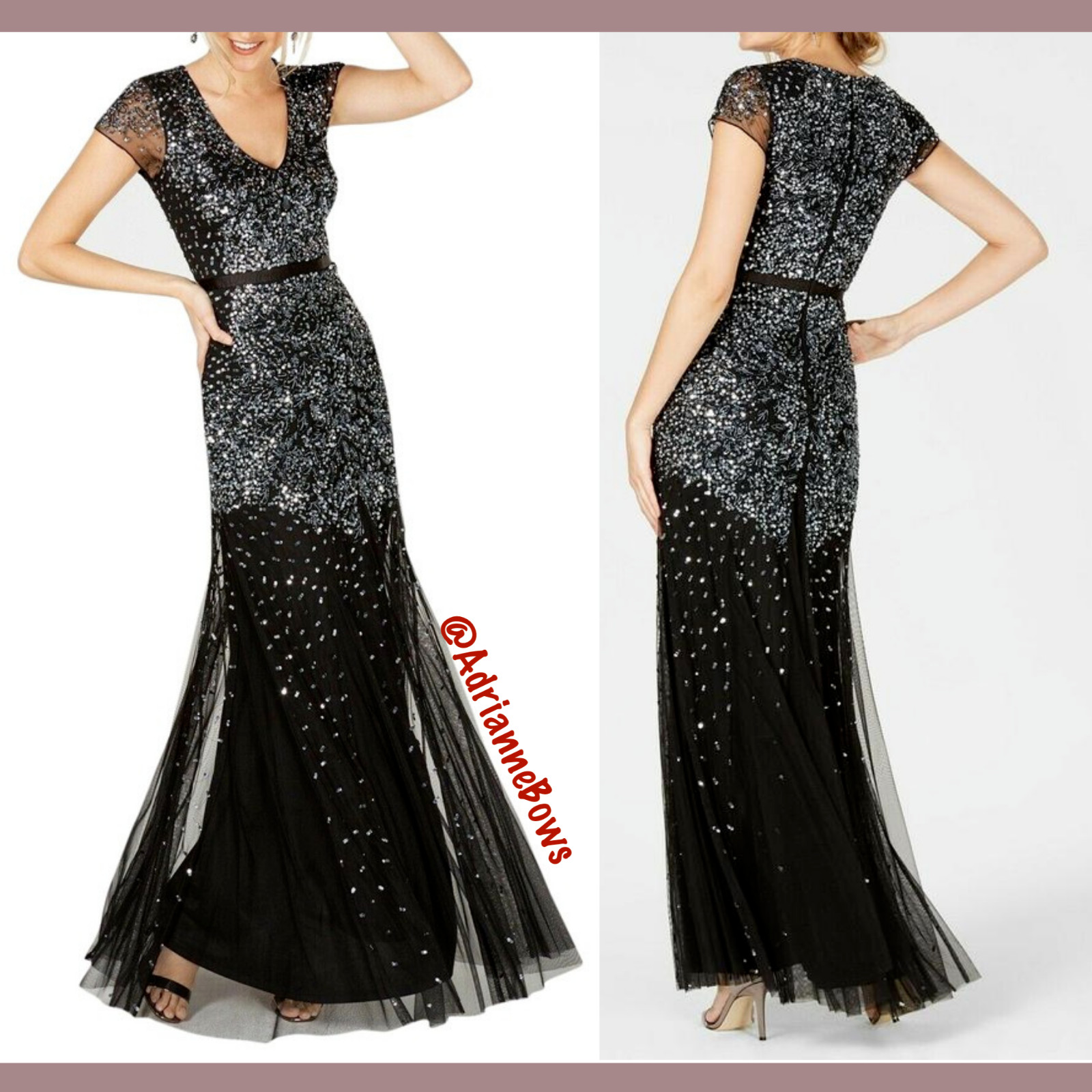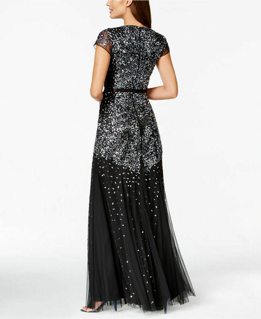 как выглядит NEW Adrianna Papell Cap-Sleeve Beaded Gown in Black/Gunmetal SZ 2 N734 фото