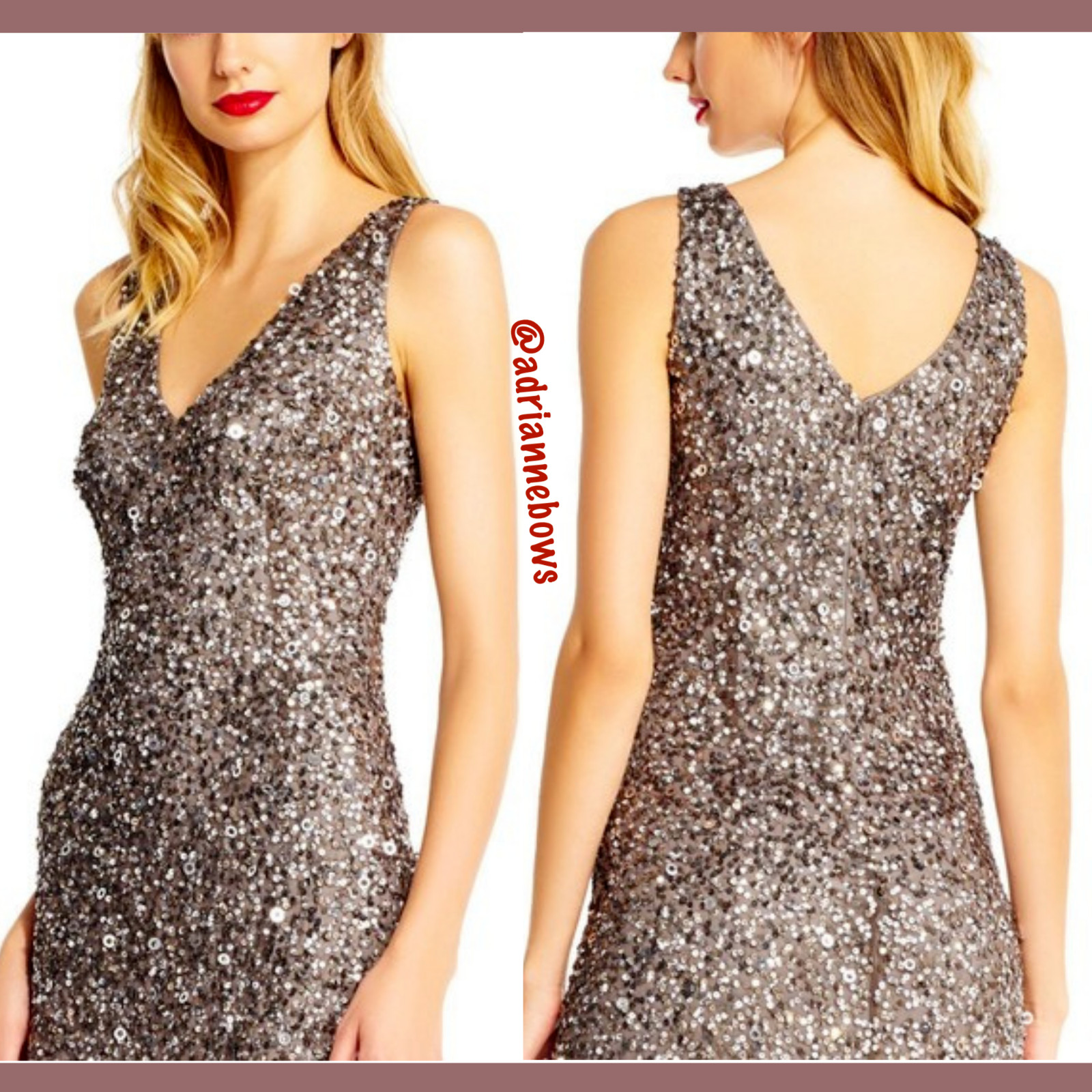 как выглядит NWT Adrianna Papell V-Neck Sequin Crunchy A-Line Gown in Lead SZ 8 N875 фото