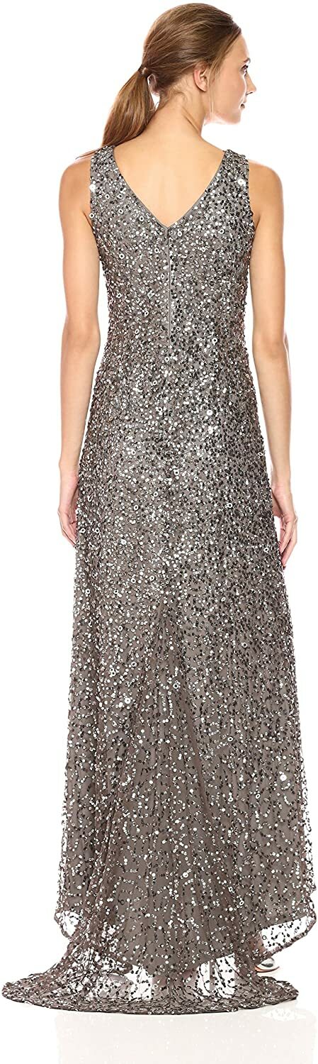 NWT Adrianna Papell V-Neck Sequin Crunchy A-Line Gown in Lead SZ 8 N875