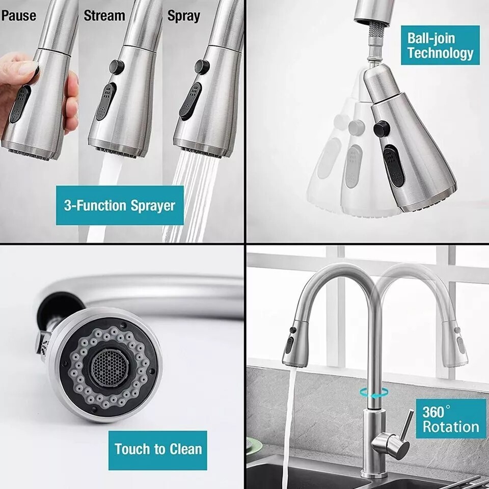 Touch Sensor Kitchen Sink Faucet Pull Down Sprayer Swivel Mixer Brushed Nickel