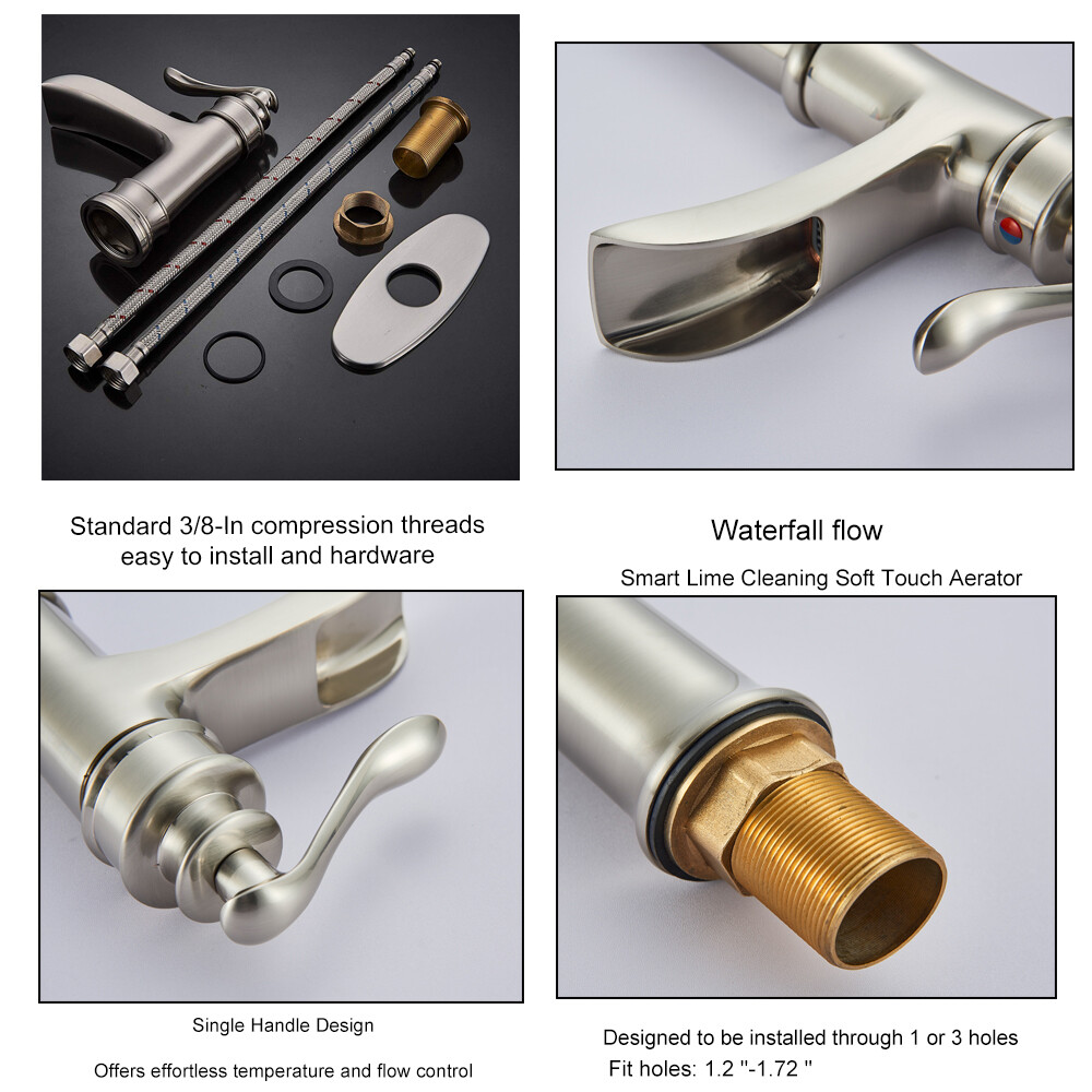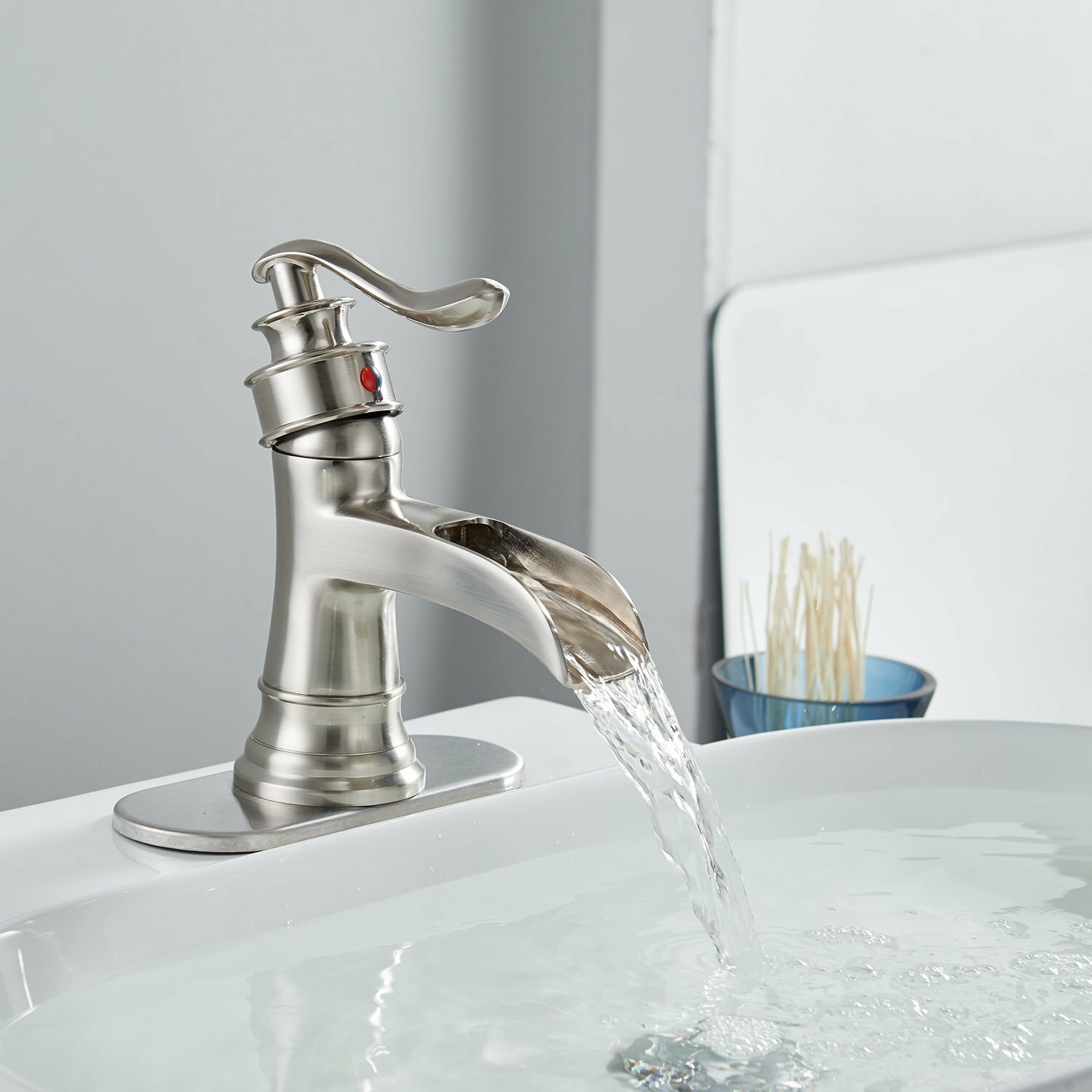Bathroom Faucet Brushed Nickel Waterfall Single Handle Lavatory Vanity Sink Tap