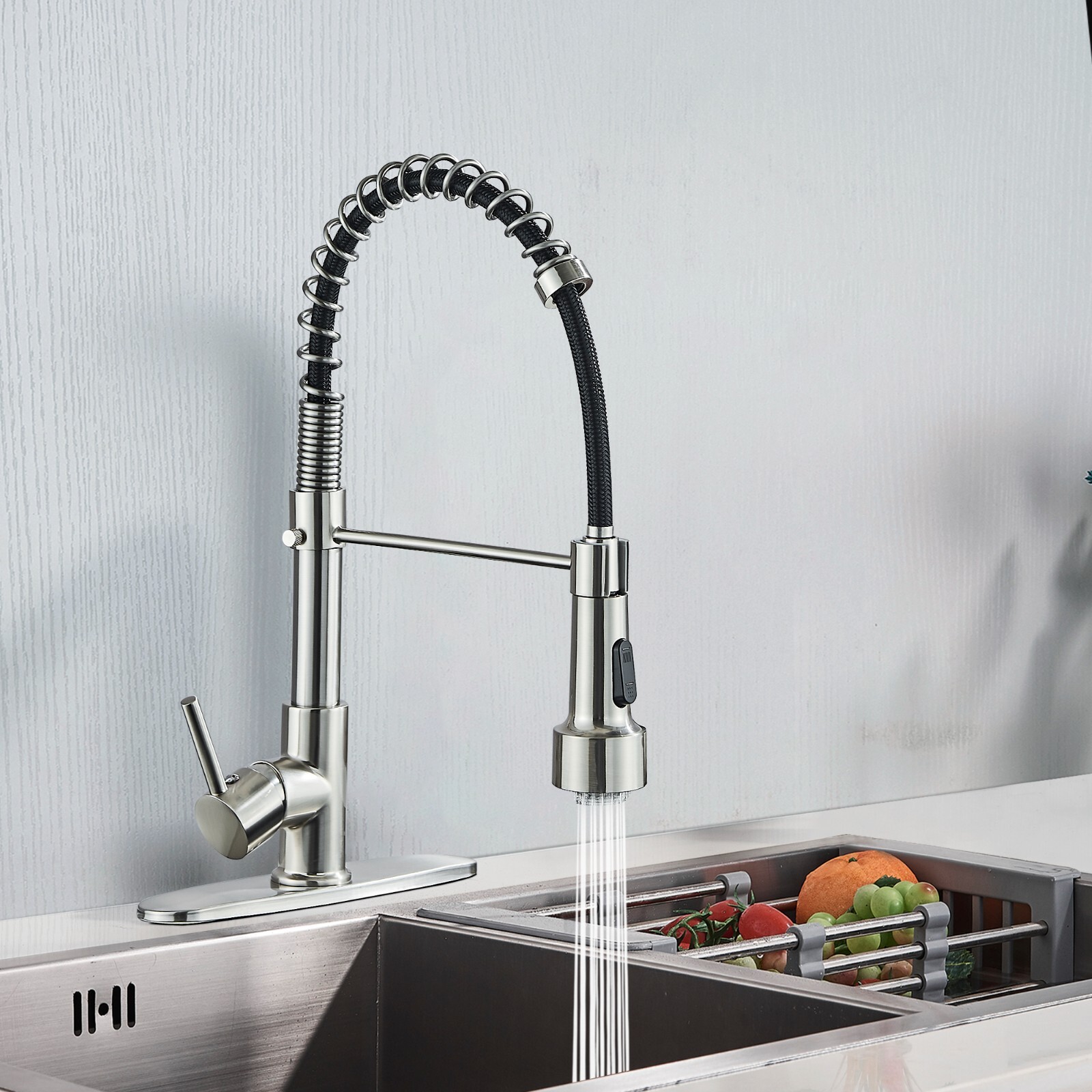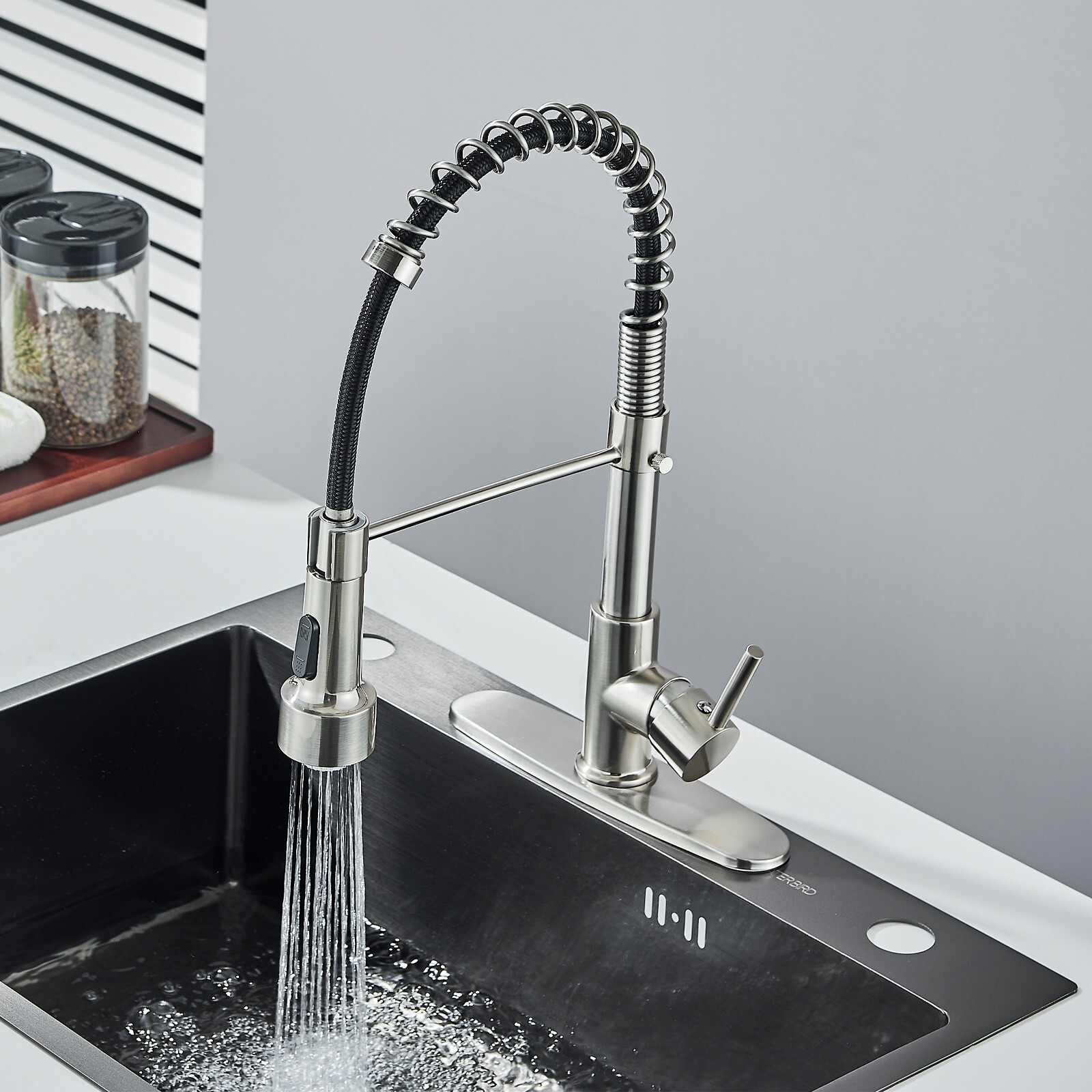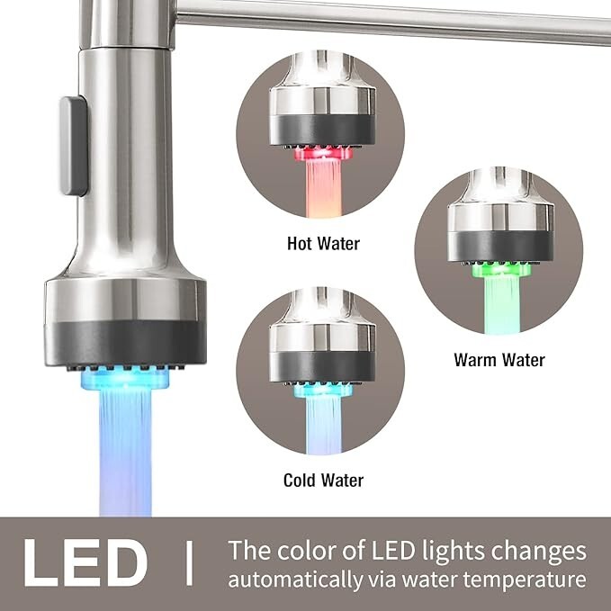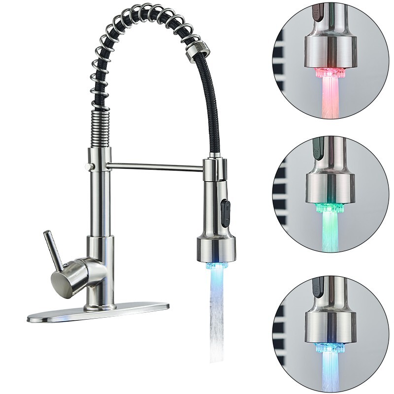 Brushed Nickel LED Kitchen Sink Faucet Pull Down Sprayer Swivel Spout Mixer Tap