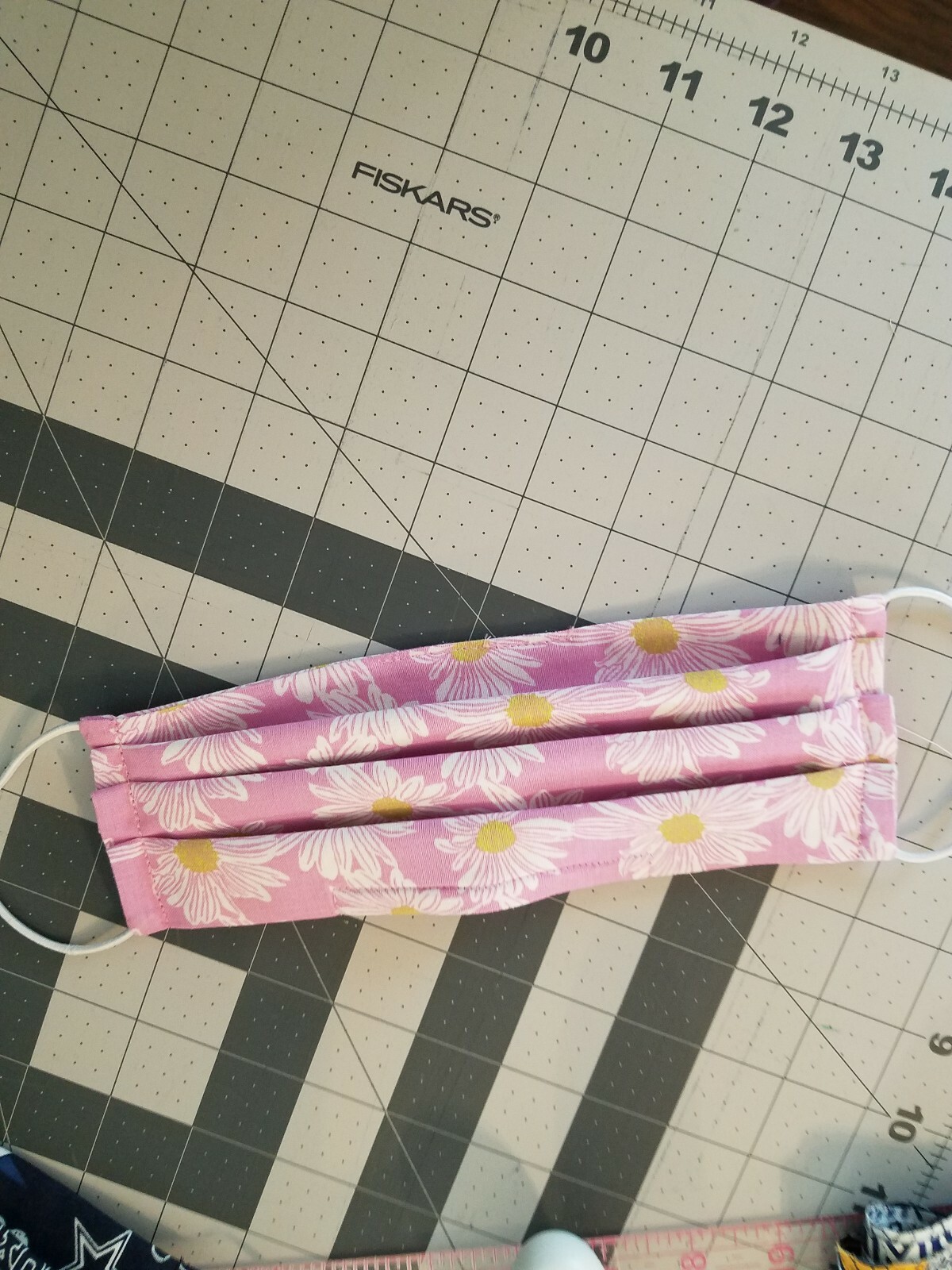 Daisy's Hand Made Cotton Face Mask Pleated washable adjustable ear straps