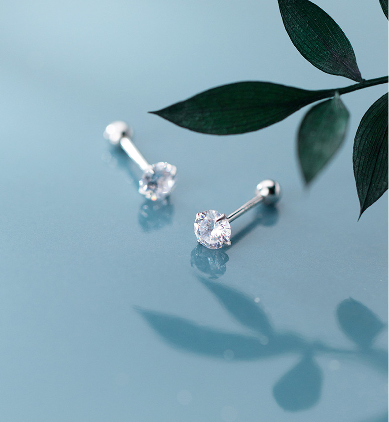 925 Sterling Silver CZ Ball Screw Back Cartilage Helix Earrings Women Men PE1