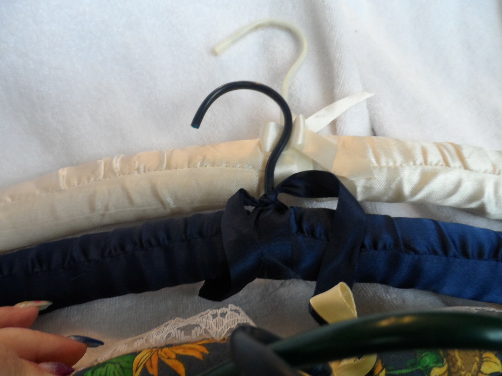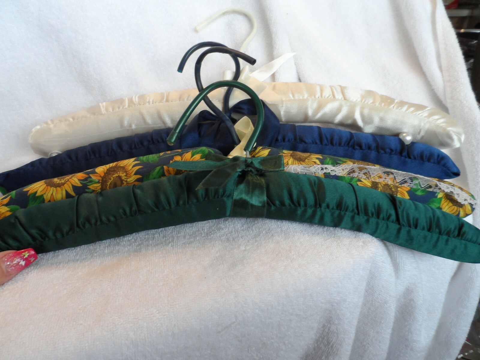 Vintage padded hangers - lot of 4 sunflower, green, navy, cream