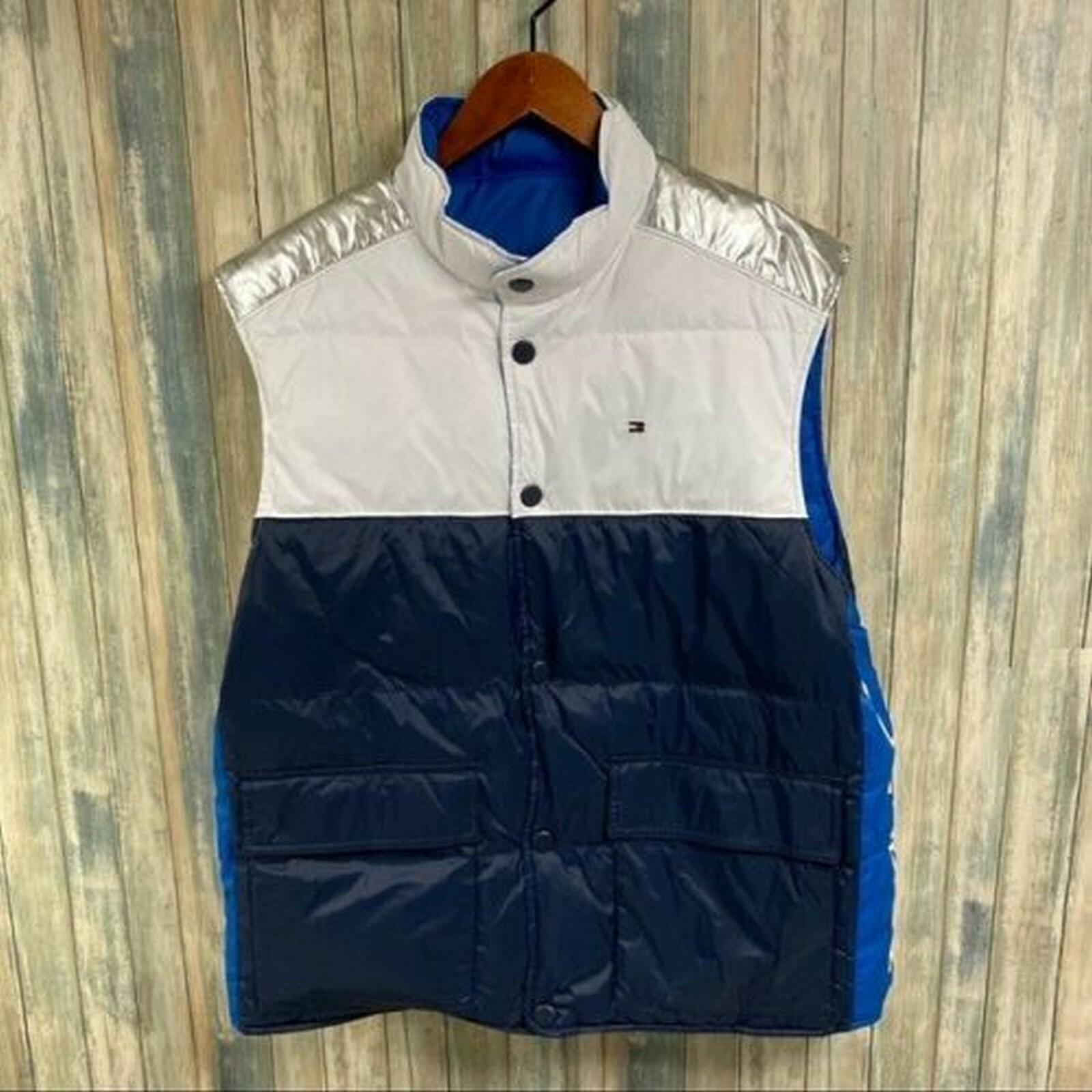 как выглядит 149 NWT Tommy Hilfiger Men s Down Vest Sz L Reversible Puffer Outerwear Sport фото