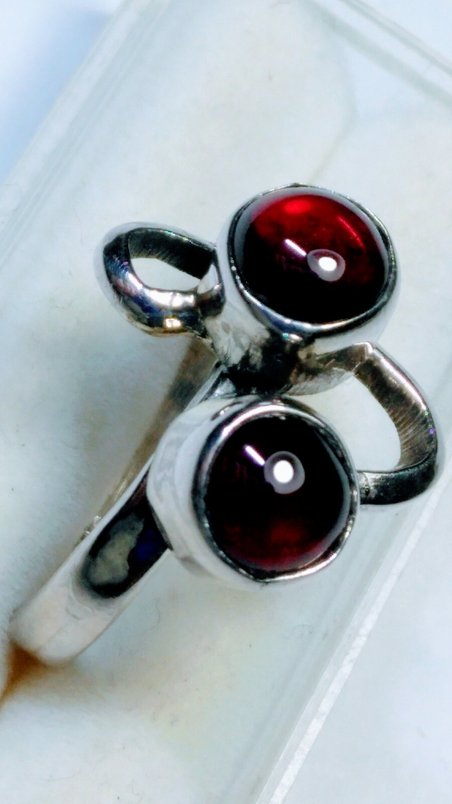 как выглядит CHARMING TWIN NATURAL GARNETS IN STERLING SILVER.925 RING SIZE 7.75-8.0 фото