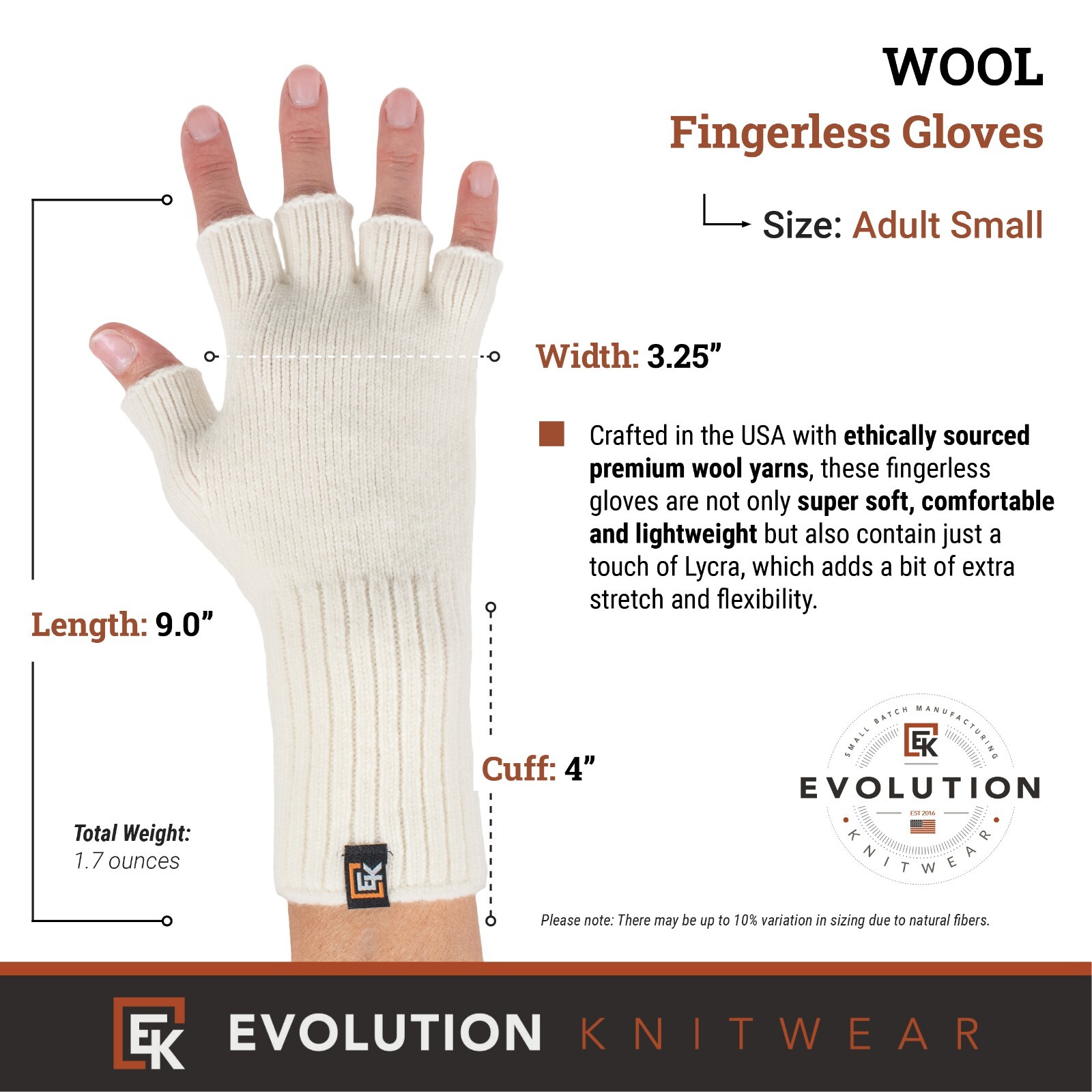 Wool Knit Fingerless Gloves - Made in the USA - Super Soft Merino Wool - Small