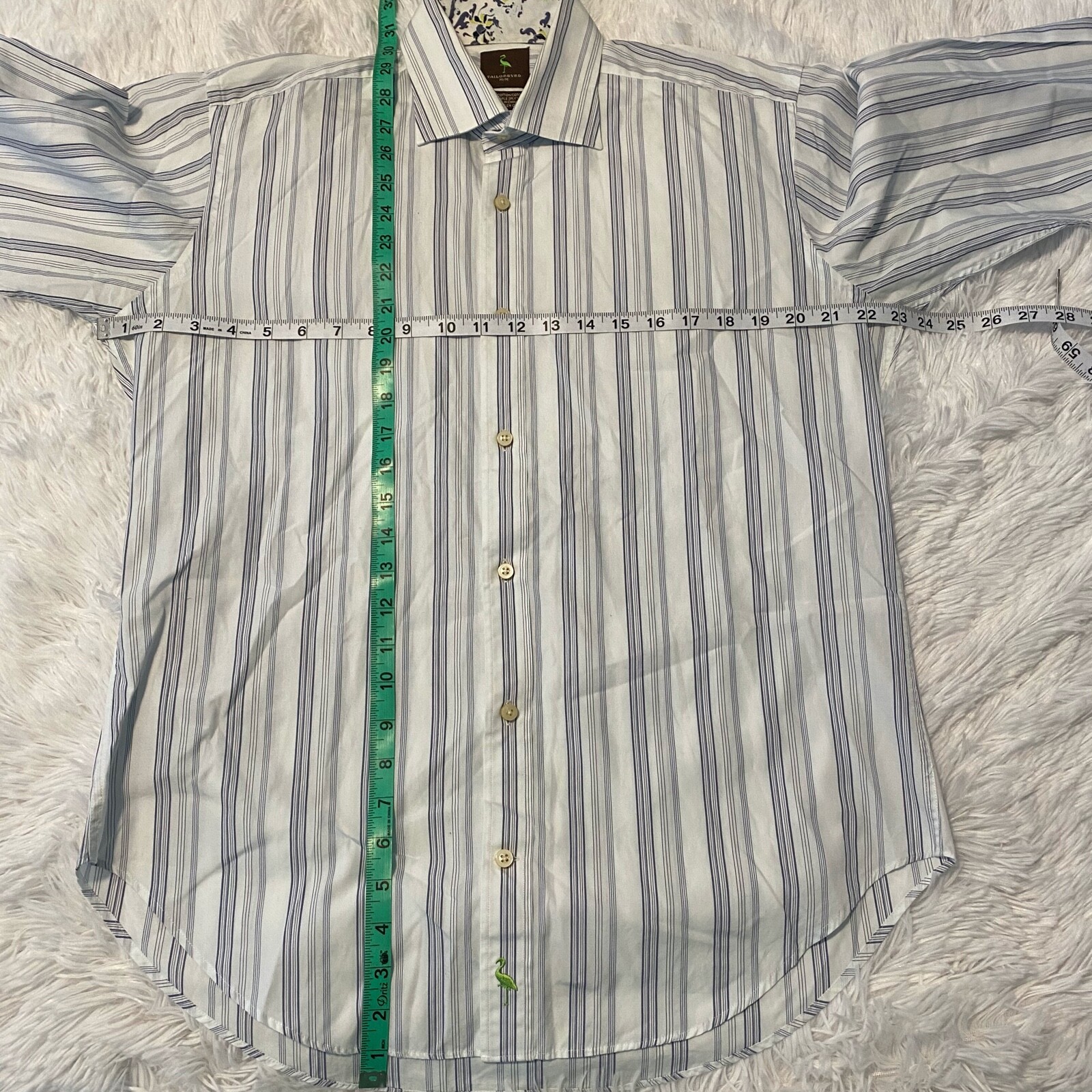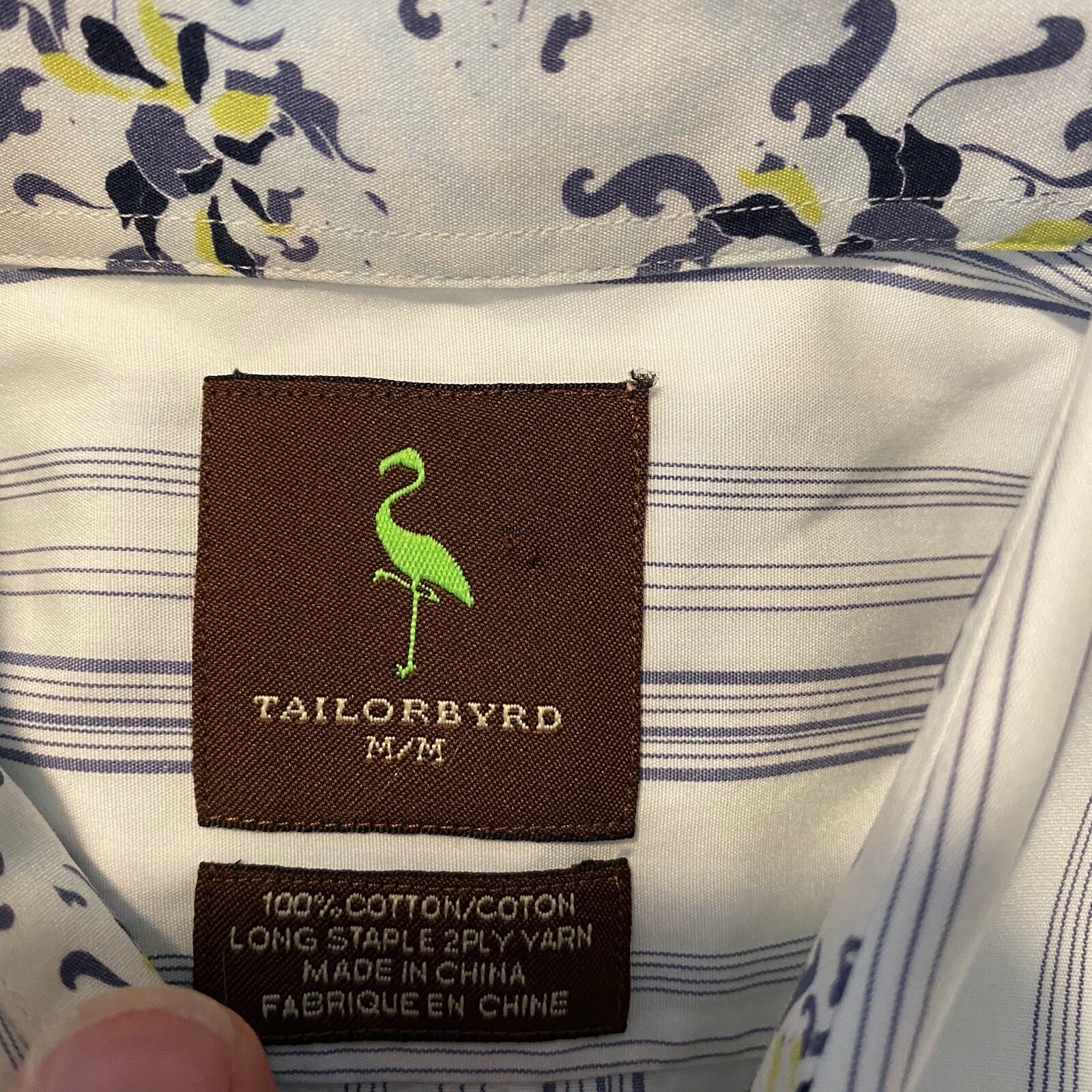 Tailorbyrd Mens Size Medium White Striped Long Sleeve Button Down Shirt EUC