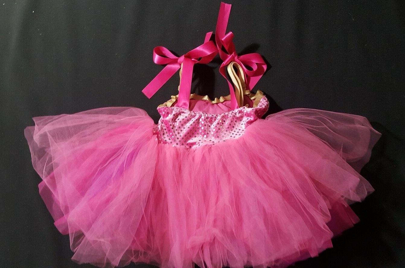 Girl Dance Costume Pretend Play Tutu Bright Pink Sequin Dress Sz Small