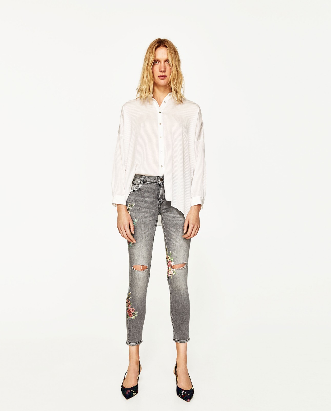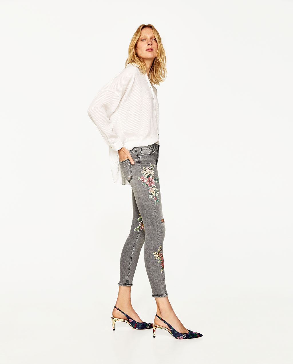 как выглядит So cute Zara mid-rise FLORAL PRINT JEANS with rips-gray-ref 5862/079/-size-NWT фото