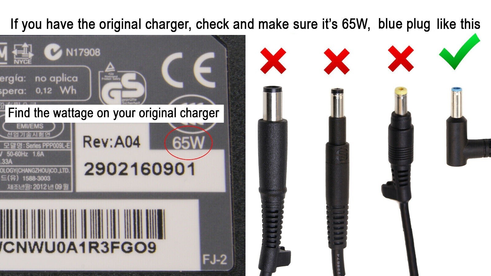 65W Genuine HP Laptop Charger Power Adapter For L23960-003 L24008-001 TPN-AA04