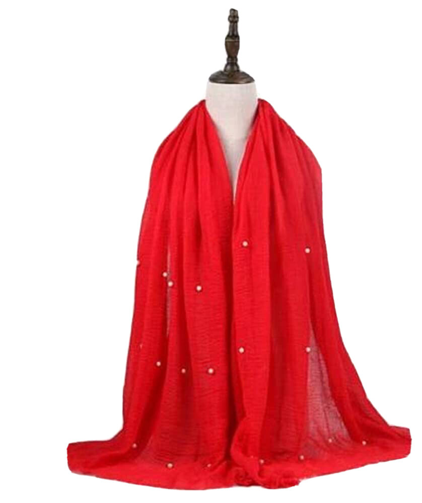 как выглядит Cotton Blend Viscose Maxi with Pearl Crinkle Hijab Scarf Soft Red фото
