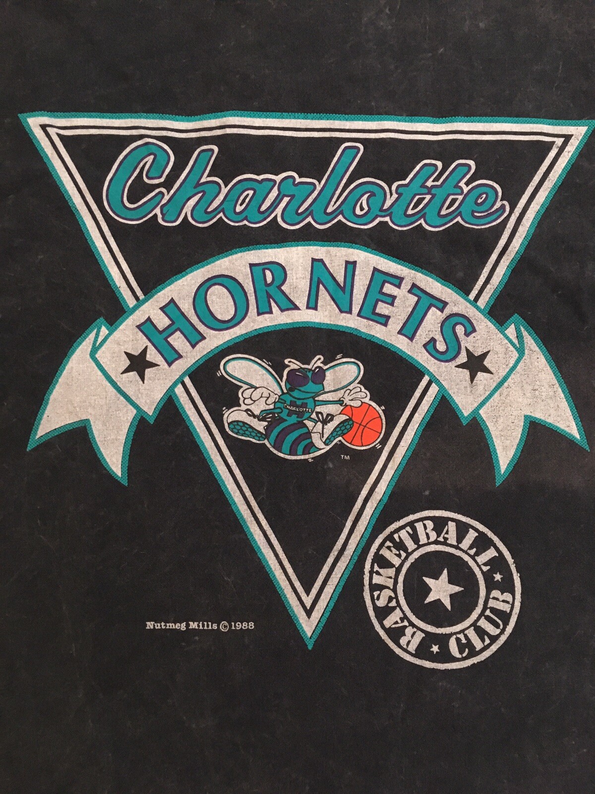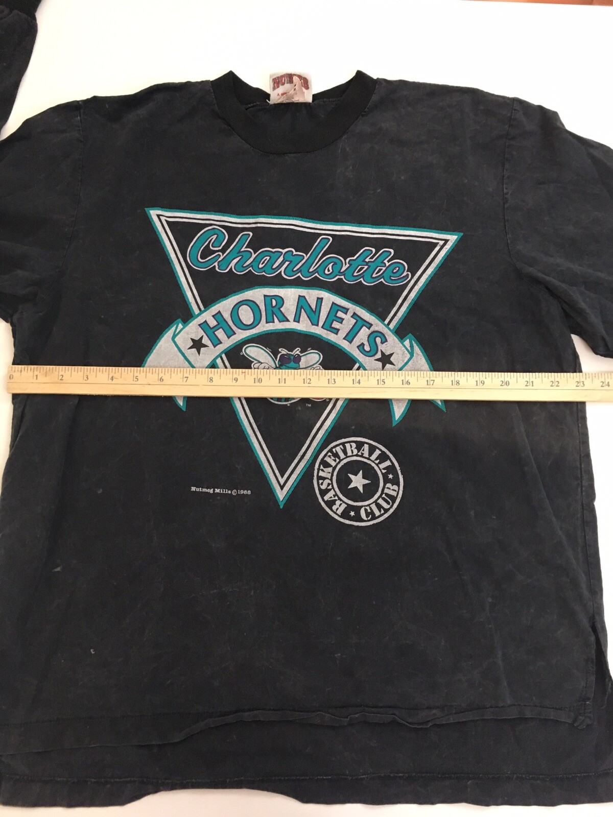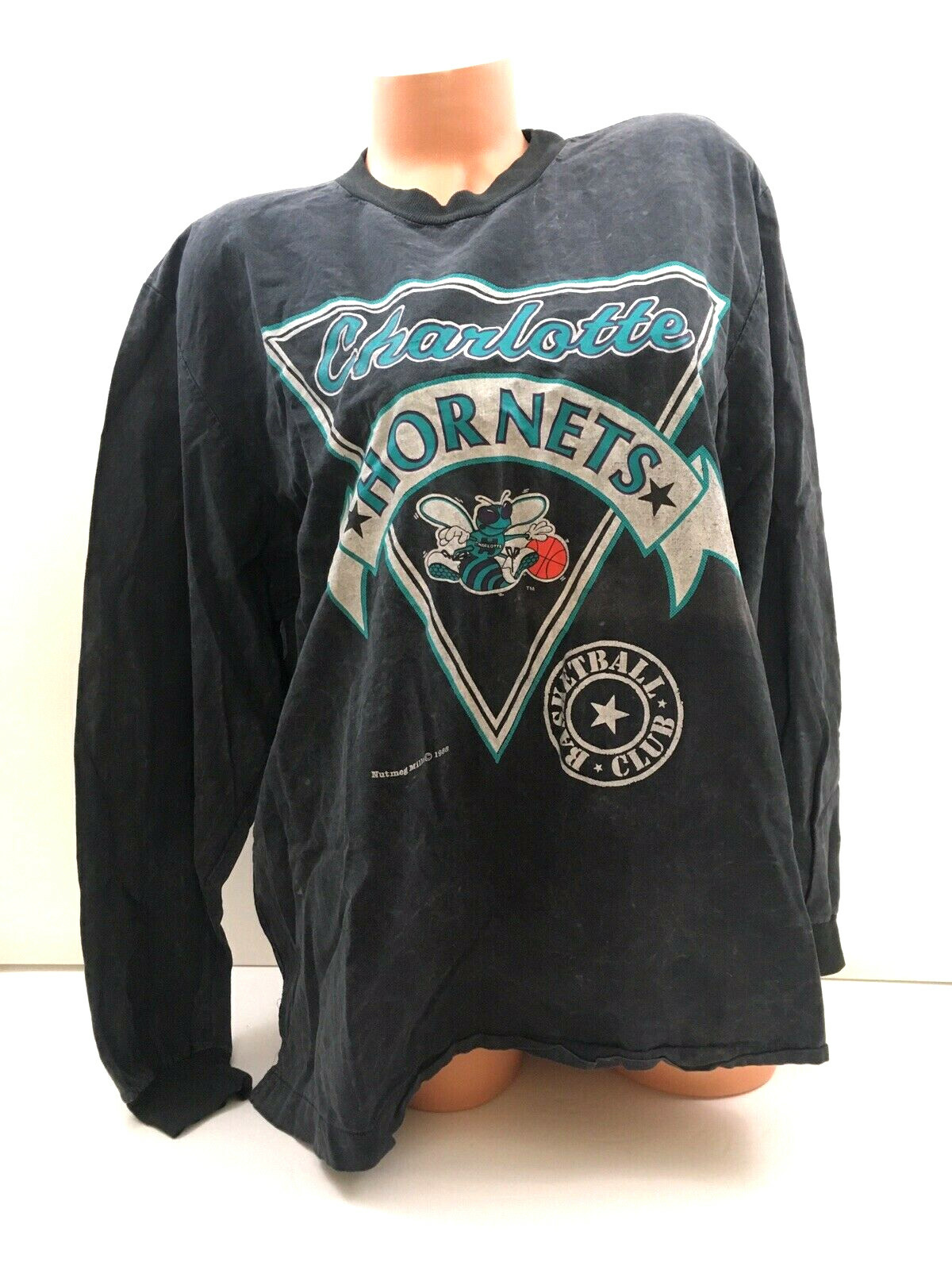 Vtg Charlotte Hornets Mens T-Shirt Nutmeg 1988 USA Single Stitch Long Sleeve L