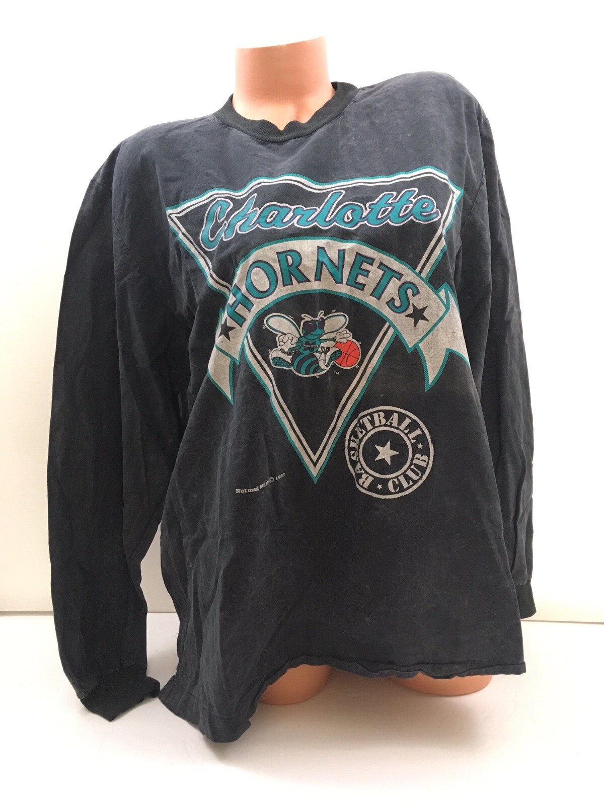 как выглядит Vtg Charlotte Hornets Mens T-Shirt Nutmeg 1988 USA Single Stitch Long Sleeve L фото