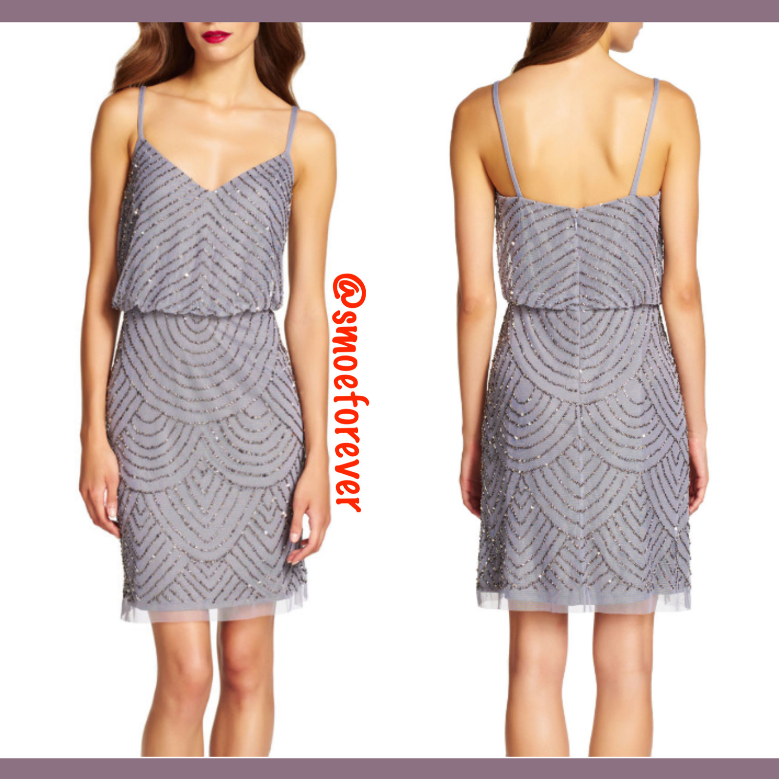 NEW Adrianna Papell Art Deco Sequin Blouson Dress in Grey/Silver SZ 10 M10
