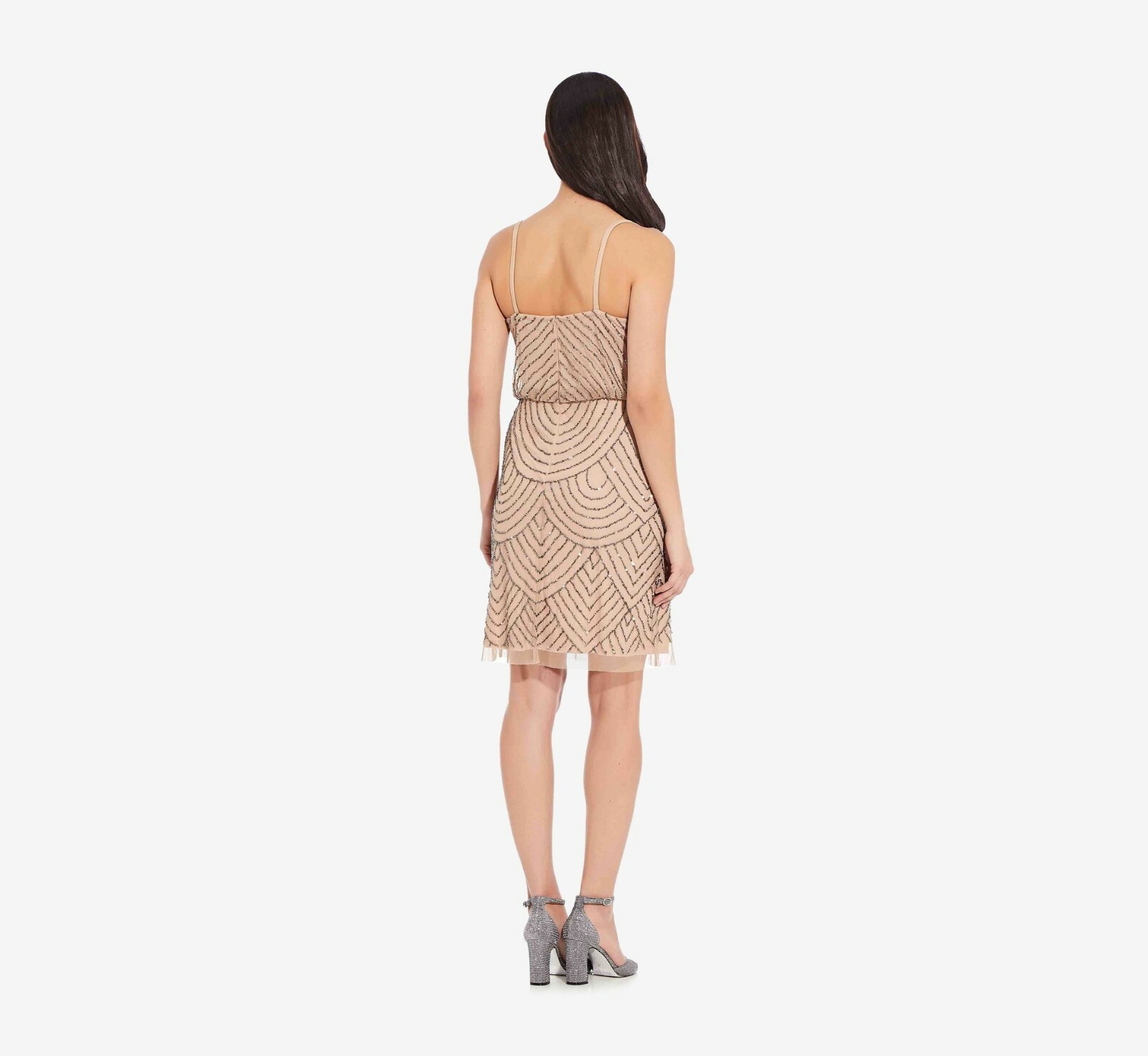как выглядит NEW Adrianna Papell Beaded Mesh Blouson Dress in Taupe Pink SZ 10 N73 фото