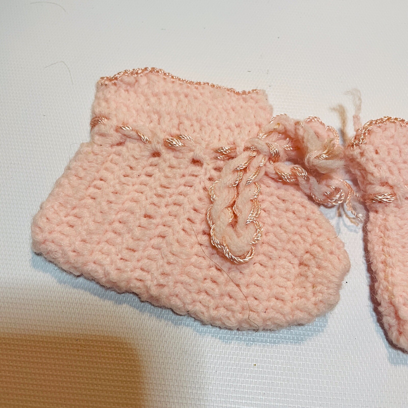 Vintage Crochet Pink Baby Booties Infant Shoes HANDMADE