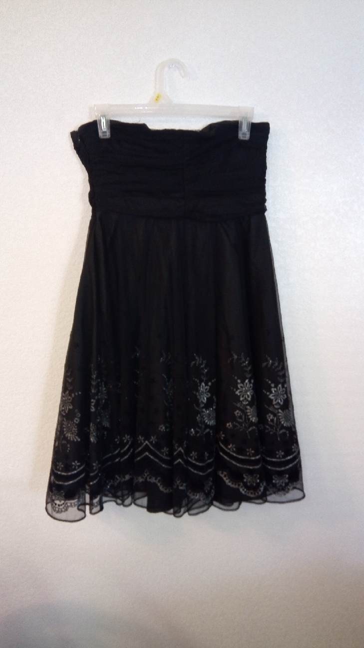 Alex Evenings black strapless dress with sparkling flowers on skirt size 12