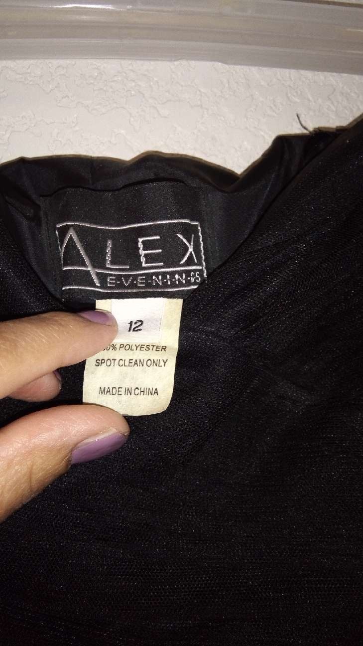 как выглядит Alex Evenings black strapless dress with sparkling flowers on skirt size 12 фото