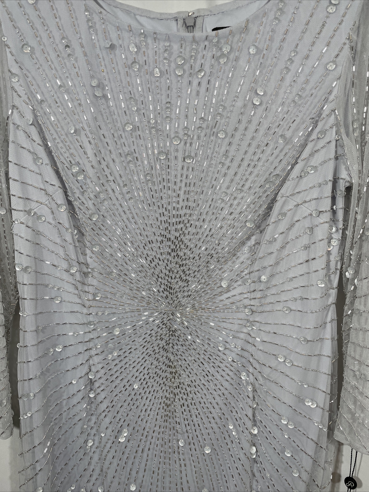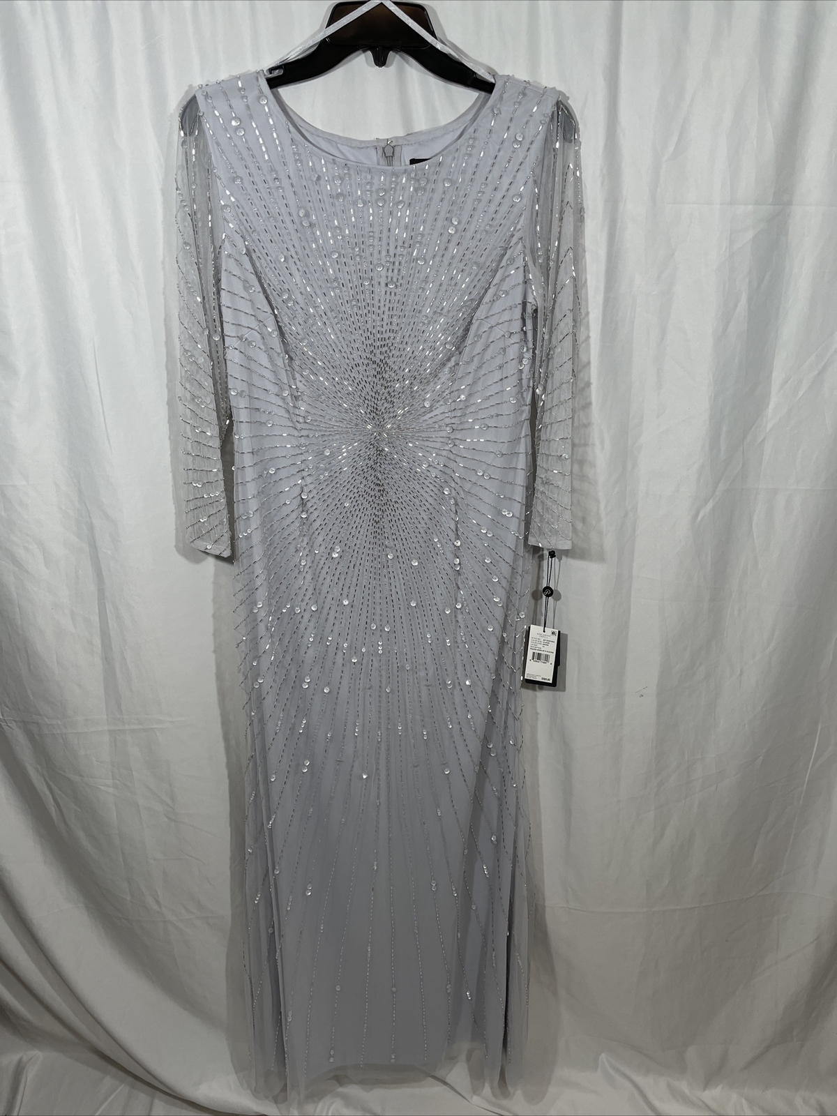 как выглядит NWT 329 Adrianna Papell Sequin Beaded 3/4 Sleeve Gown in Cloud SZ 10 G724 фото