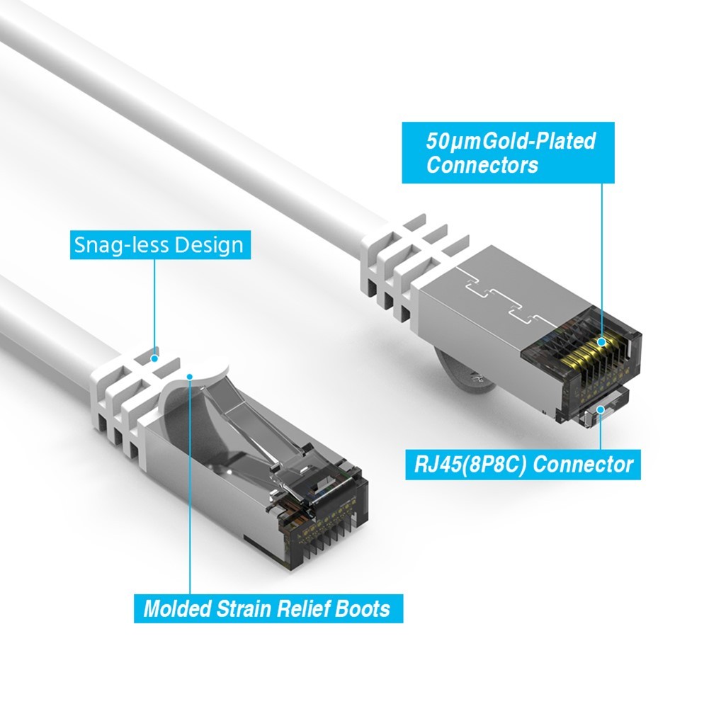 1FT CAT8 RJ45 Network LAN Ethernet SFTP Cable Cord 40Gbps 2GHz 26AWG White