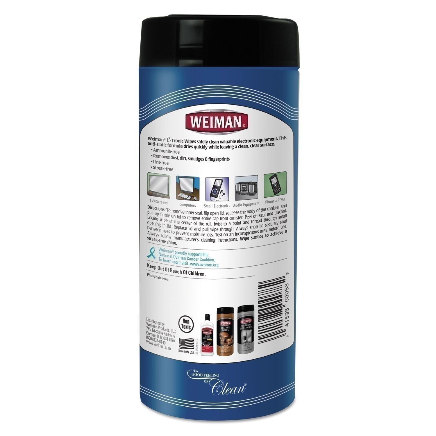 Weiman 93 E-tronic Wipes, 5 x 7, 30/Canister