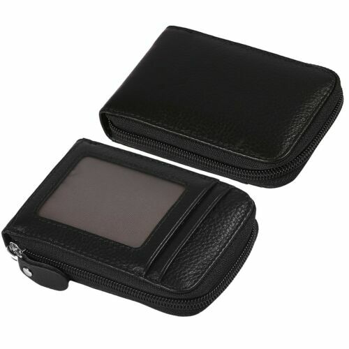 Men's Wallet Genuine Leather Credit Card Holder RFID Blocking Zipper Thin Pocket