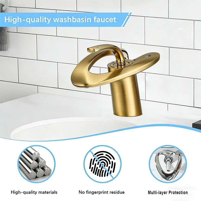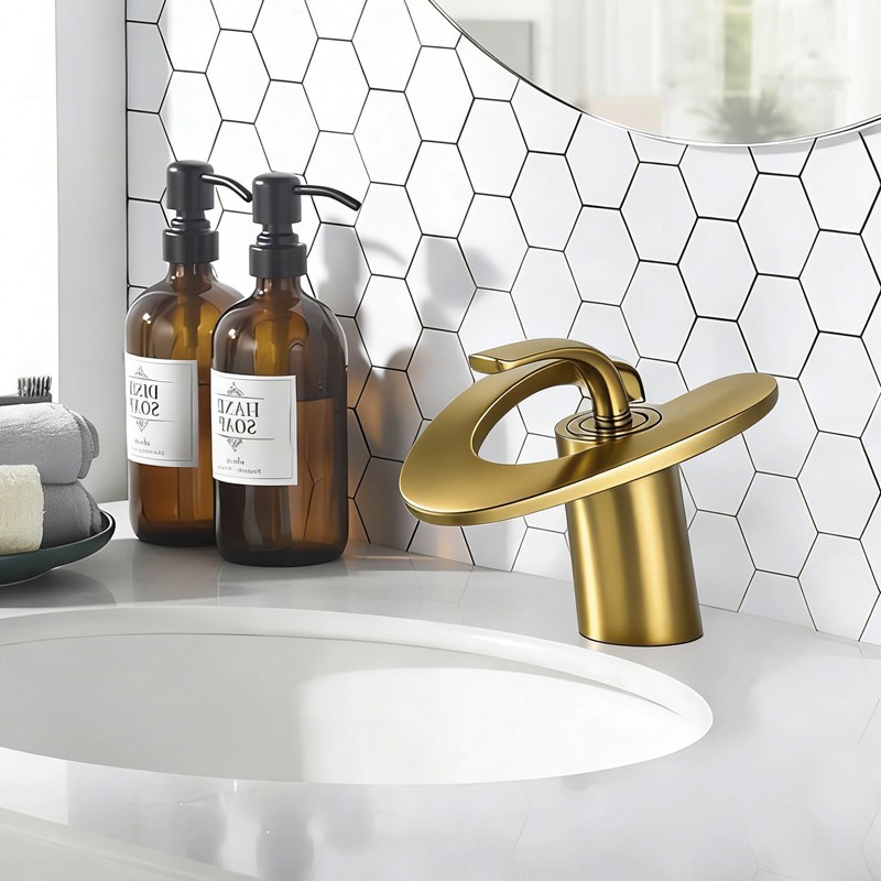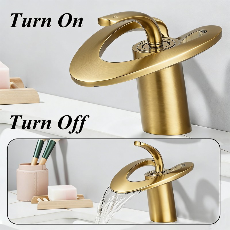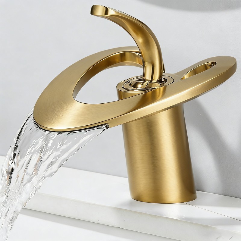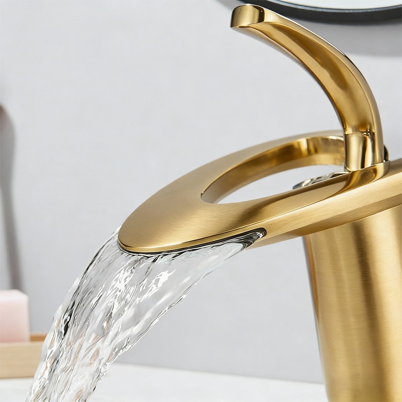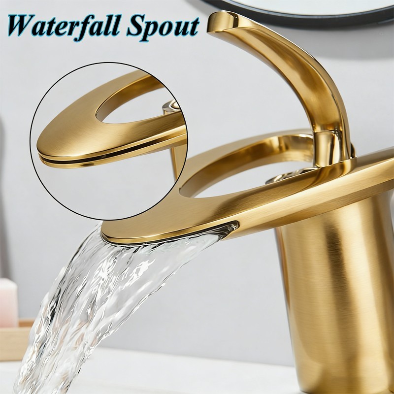 Single Handle Bathroom Sink Faucet Waterfall Brushed Gold Basin Vanity Mixer Tap