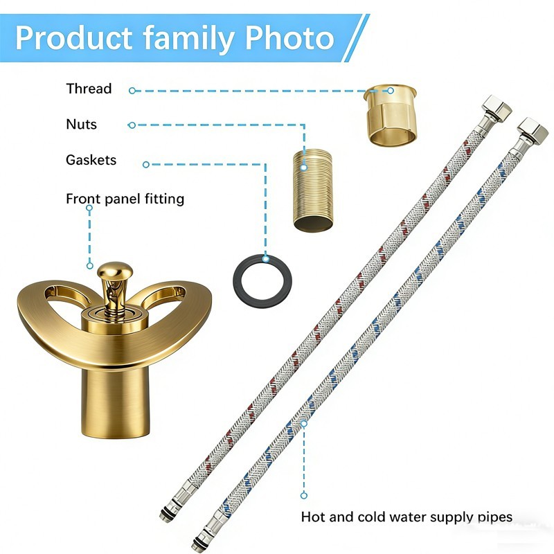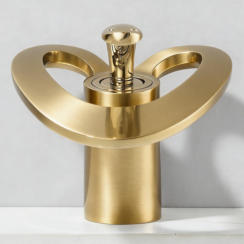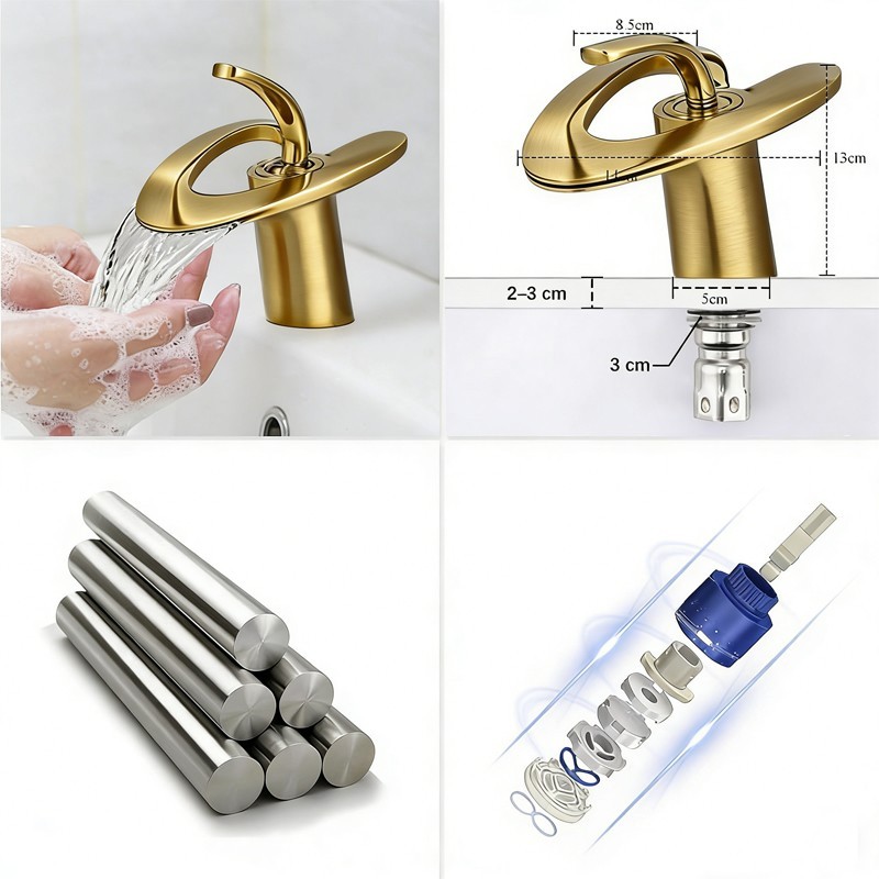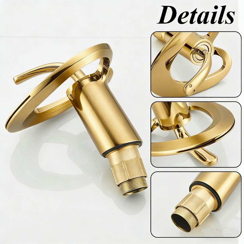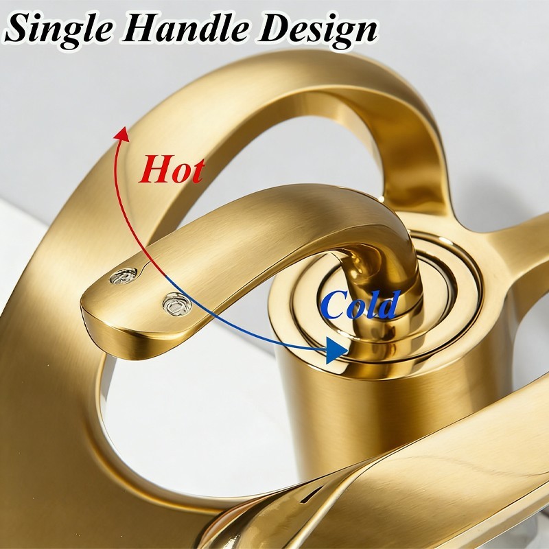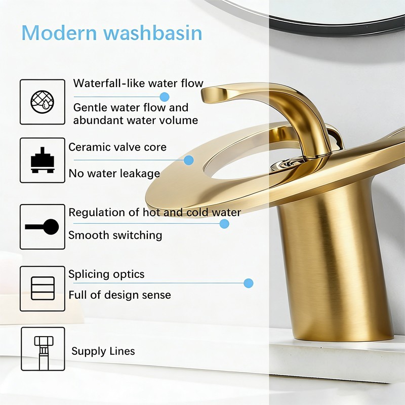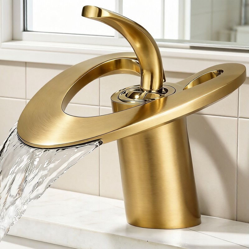 Single Handle Bathroom Sink Faucet Waterfall Brushed Gold Basin Vanity Mixer Tap