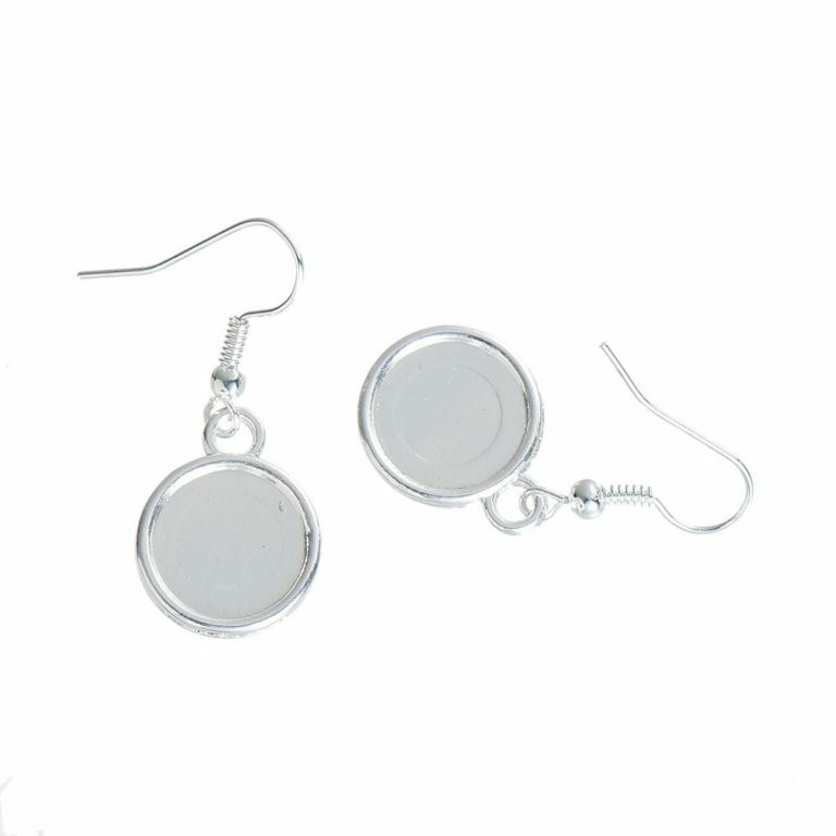 10 pcs. Silver Plated Earring Dangle Hooks Settings Bezels Cabochons 12mm Pad