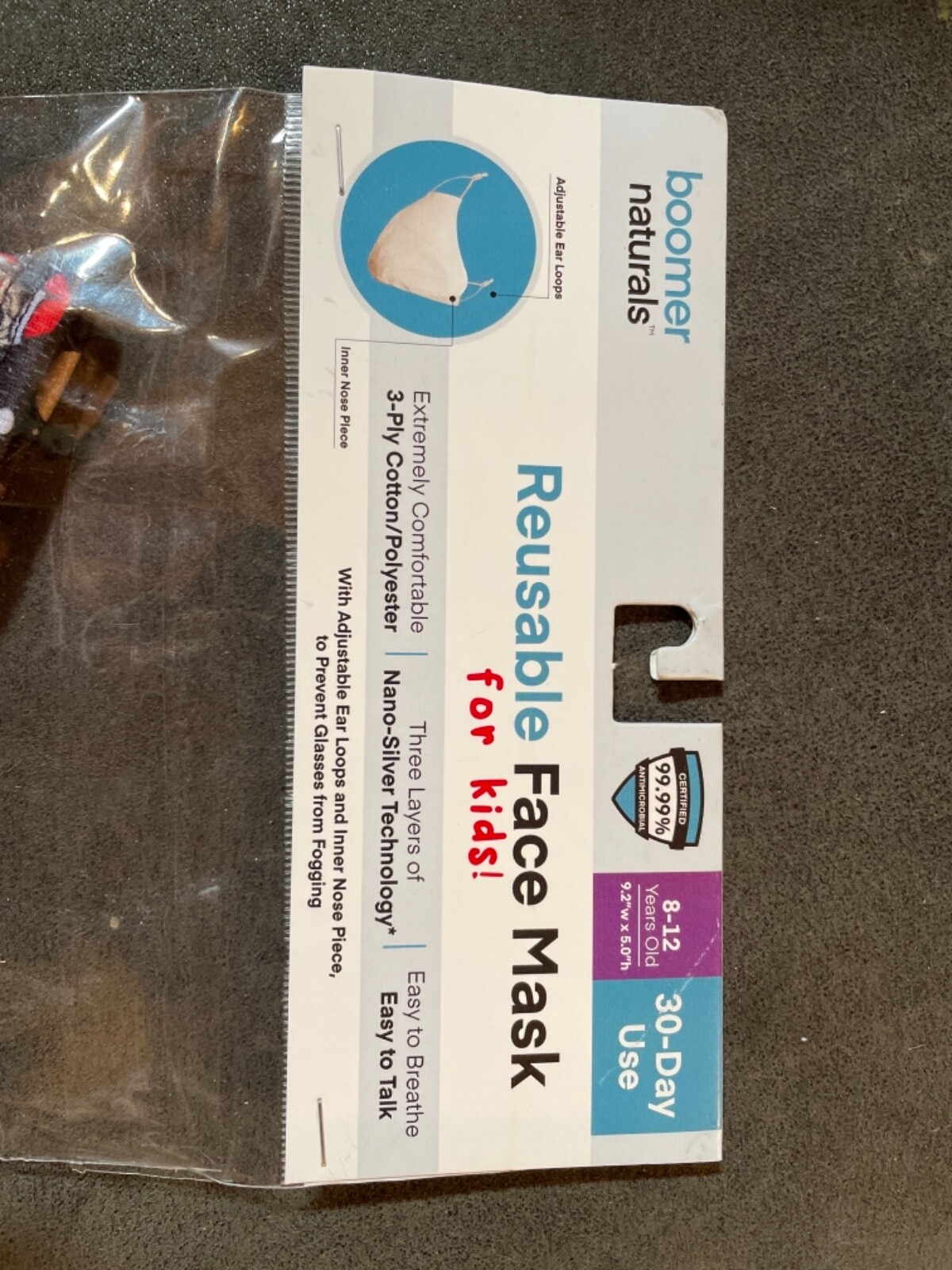 Lot of 5 New 8-12 yr Youth Boomer Naturals Reuseable Face Masks Holiday Prints