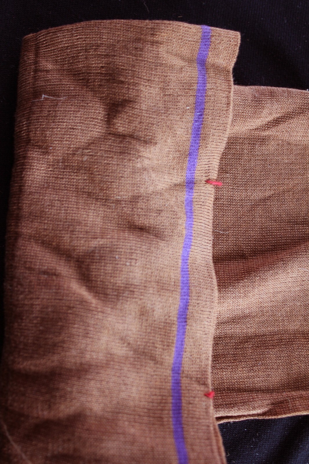 RARE DEADSTOCK FRENCH 1920'S RUST BROWN COTTON KNIT STOCKINGS 31 INCH LENGTH