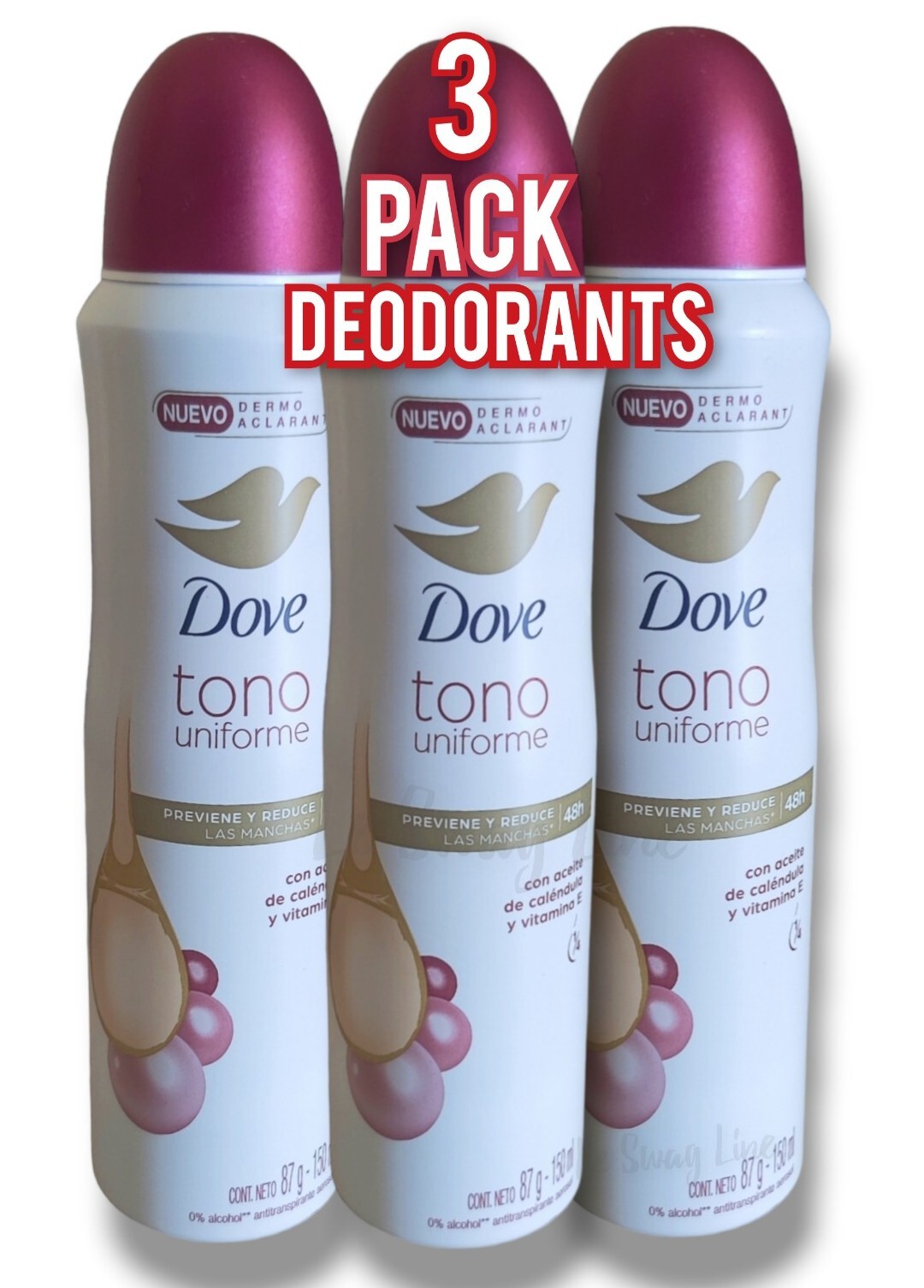3 Pack Dove Dermo Aclarant 48h Tono Uniforme Anti-Transpirant Body Spray, 150ml