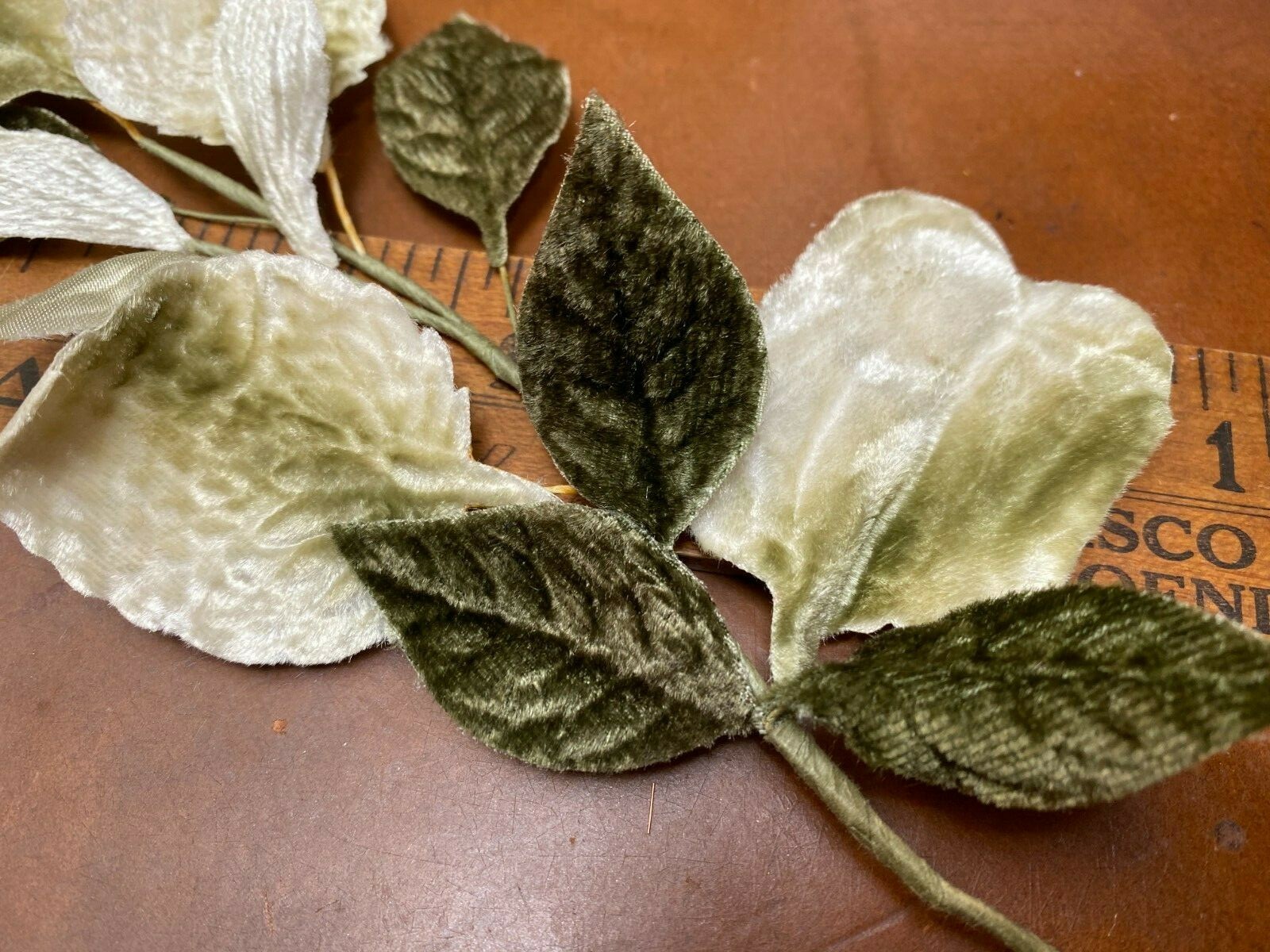 vintage millinery 1940s velvet leaves 1 spray Japan cream moss green