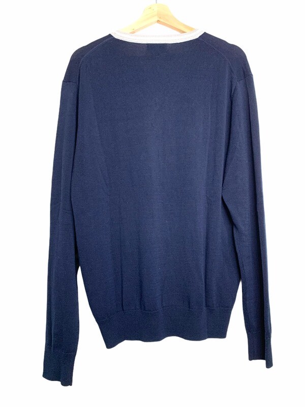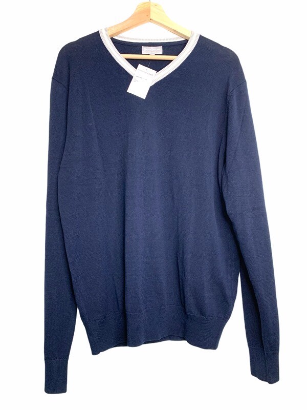 как выглядит Hickey Freeman Mens Pullover Sweater Blue White V Neck Long Sleeve L New фото