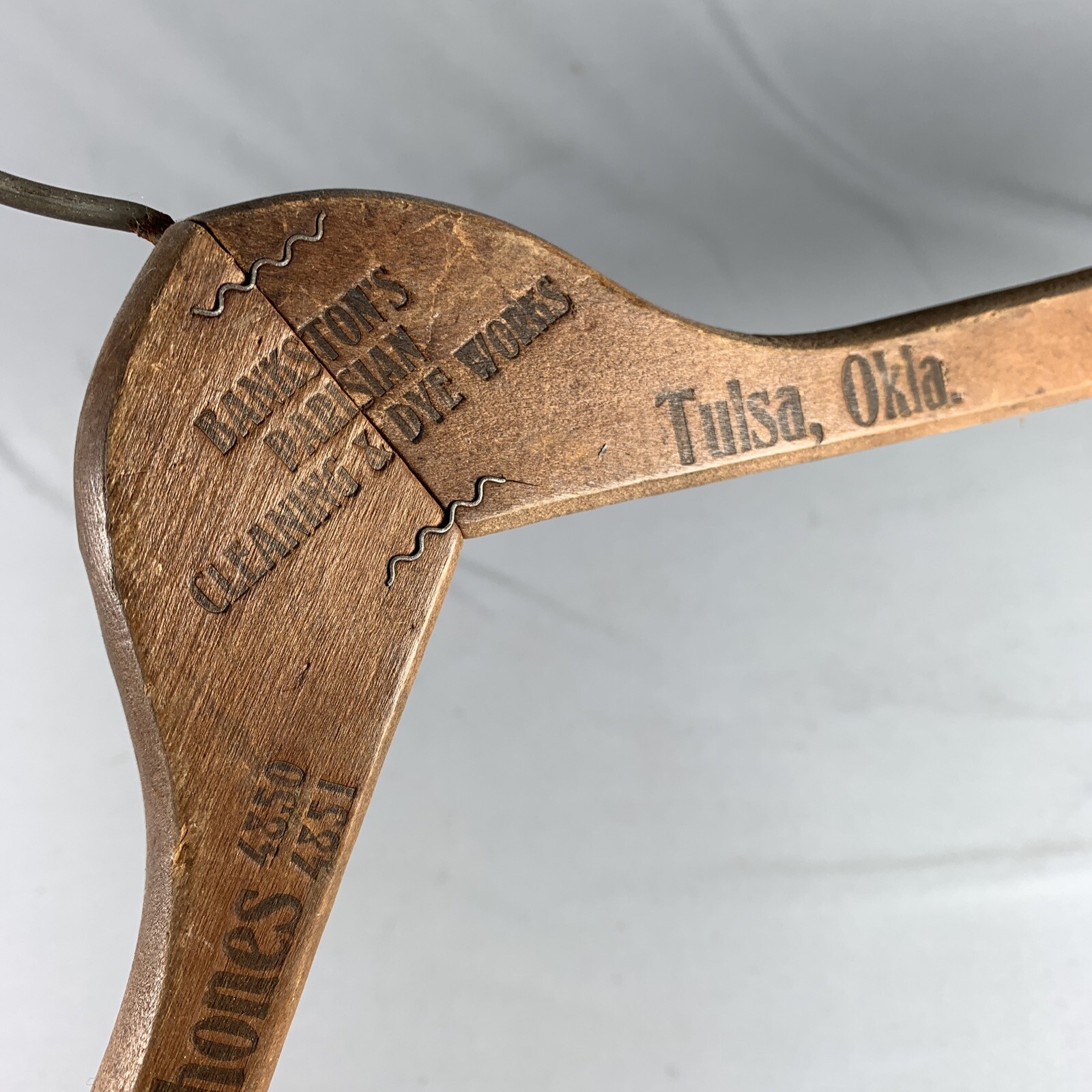Vtg Bankston's Parisian Cleaning Dye Works Wooden Hanger Tulsa Okla.