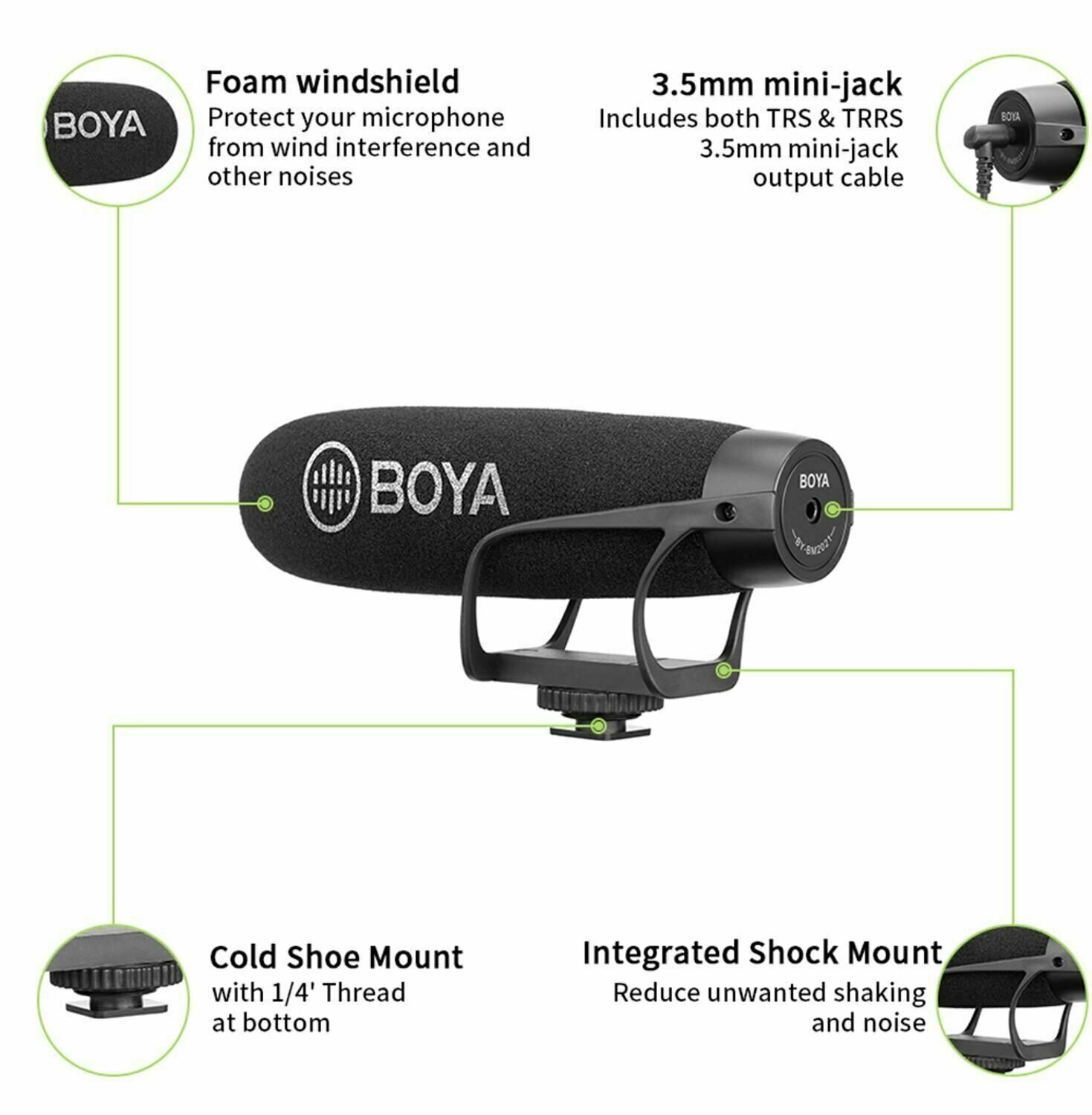 BOYA BY-BM2021 Shotgun Microphone Super-Cardioid Video Recording for Camera DSLR