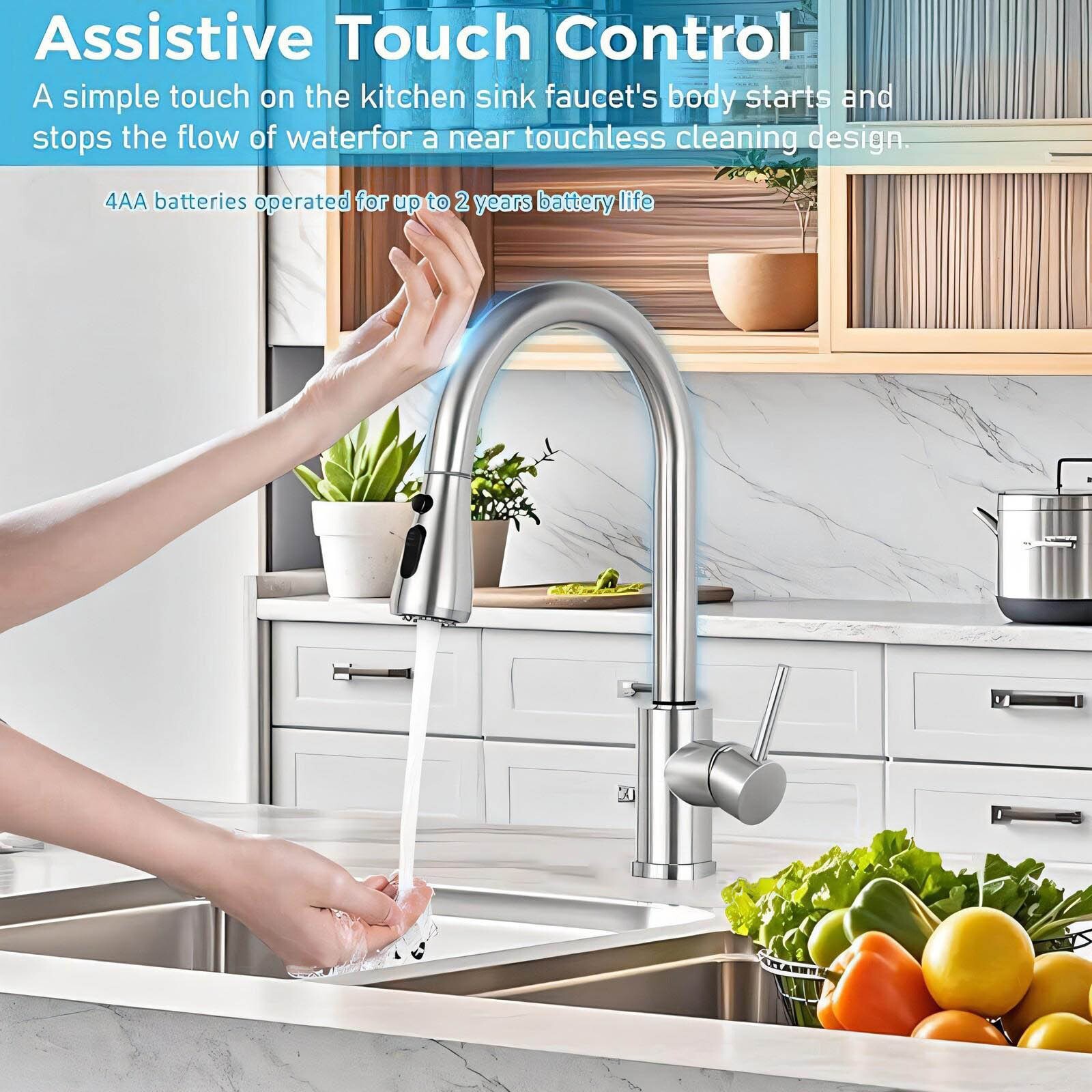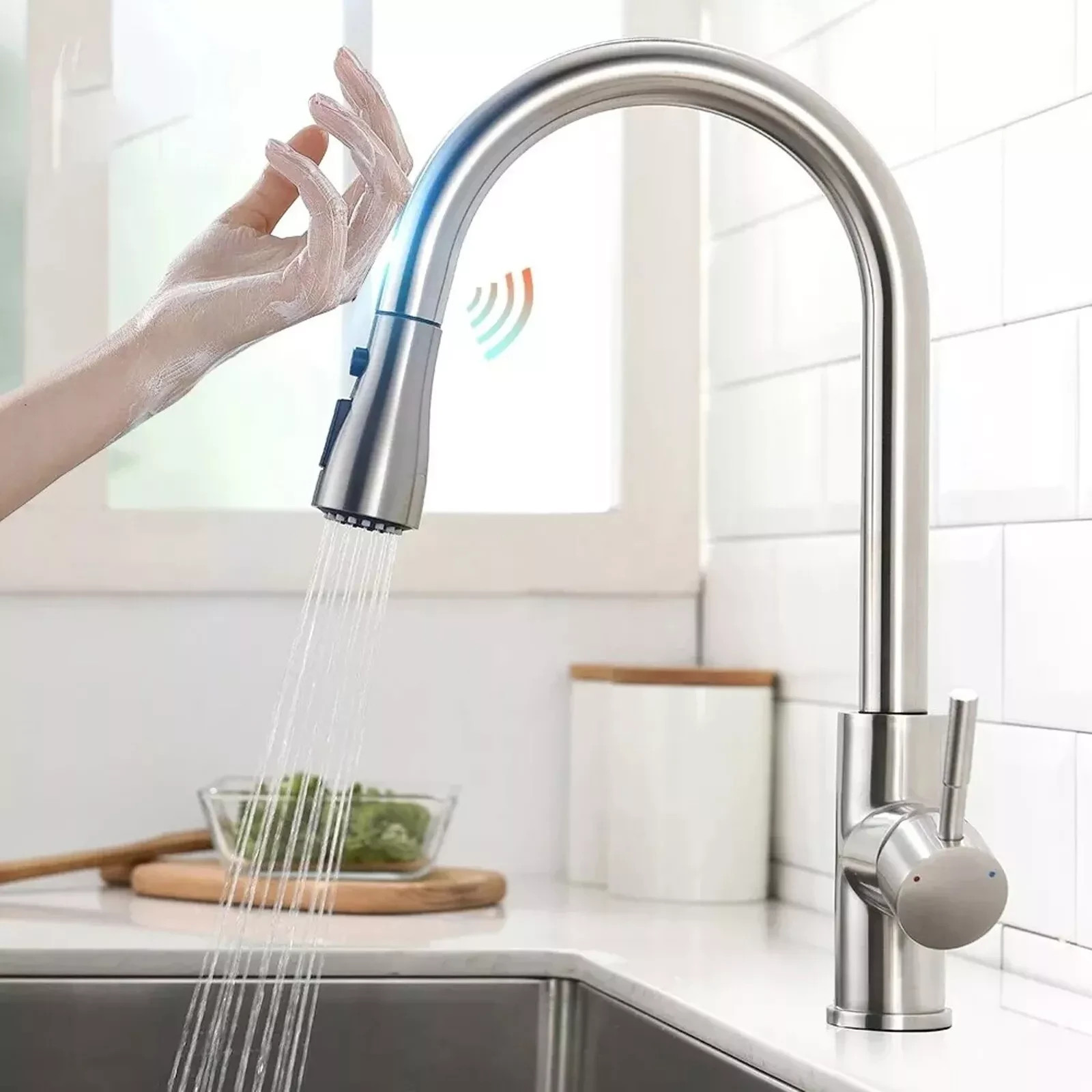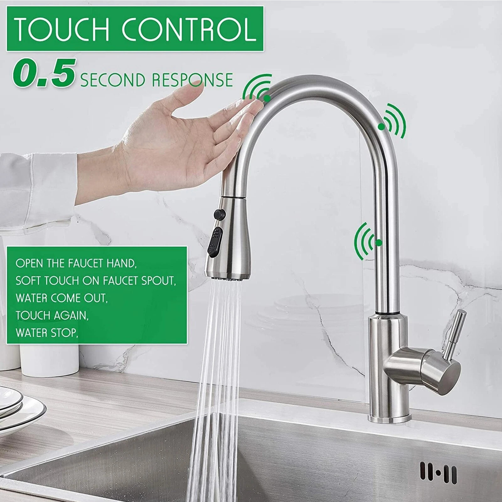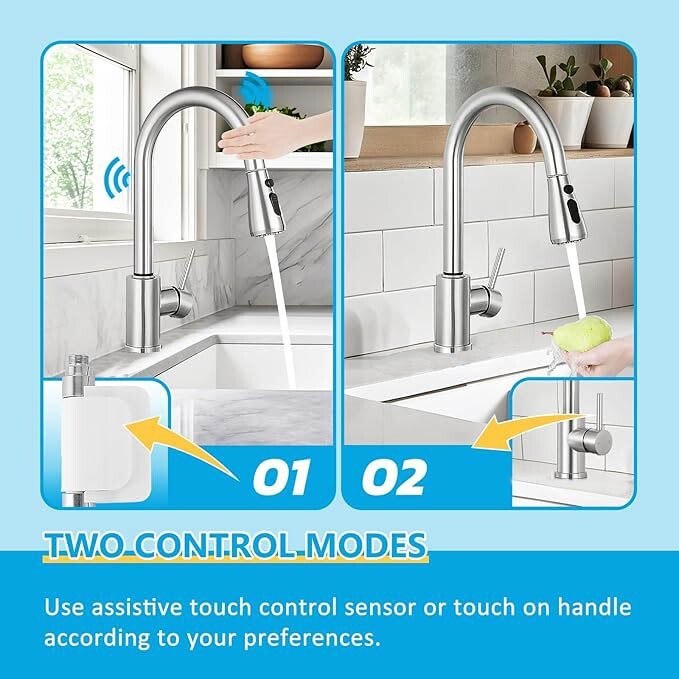 Sensor Touch Kitchen Sink Faucet Pull Out Sprayer Swivel Single Handle Mixer Tap
