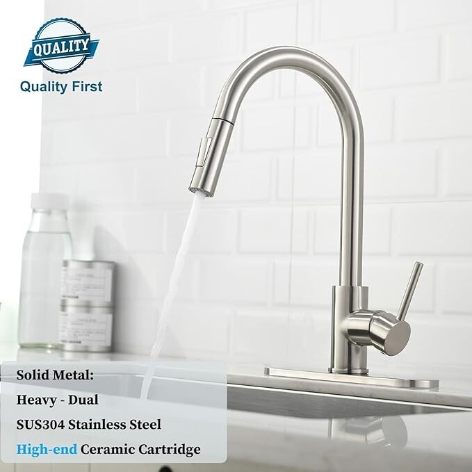 Brushed Nickel Kitchen Faucet Sink Swivel Spout Pull Down Sprayer Mixer Tap