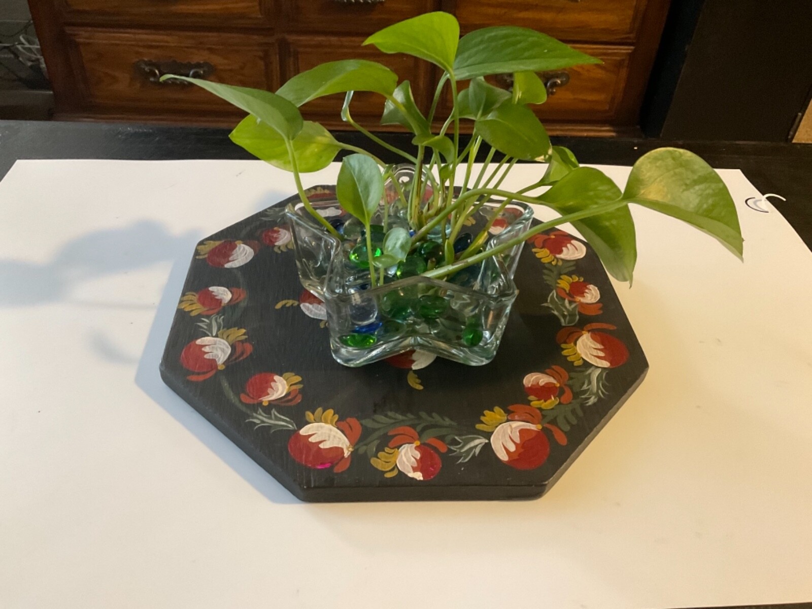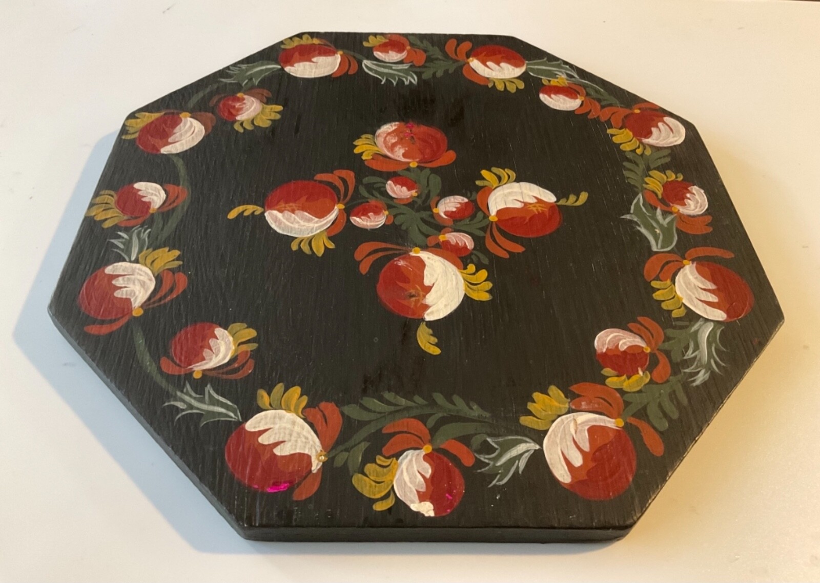 Wooden Flower Painted Octagonal Decor. Wall Decor or wooden doily.