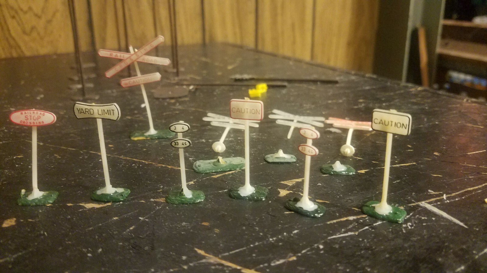 Tyco 24 Trackside Signs Poles vintage w box. missing 1 sign HO scale