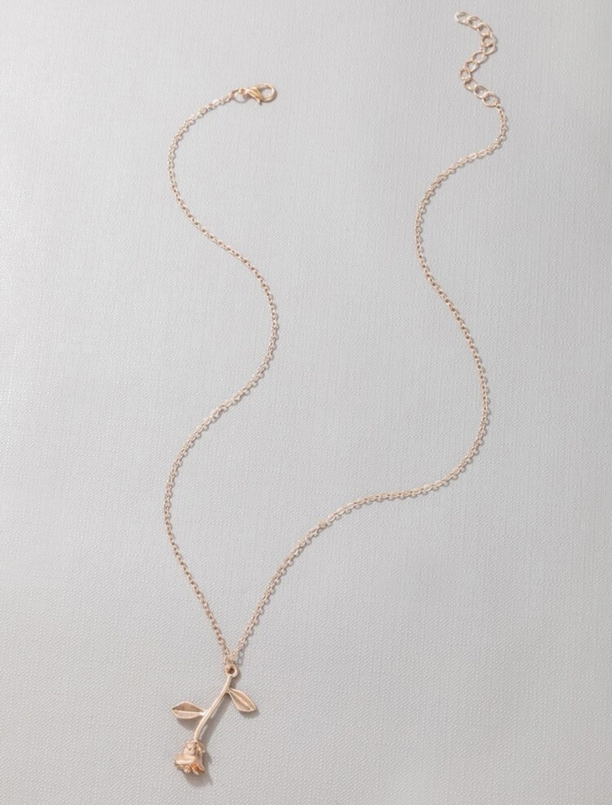 Women Rose Gold Fashion Flower Necklace Pendant 20.5
